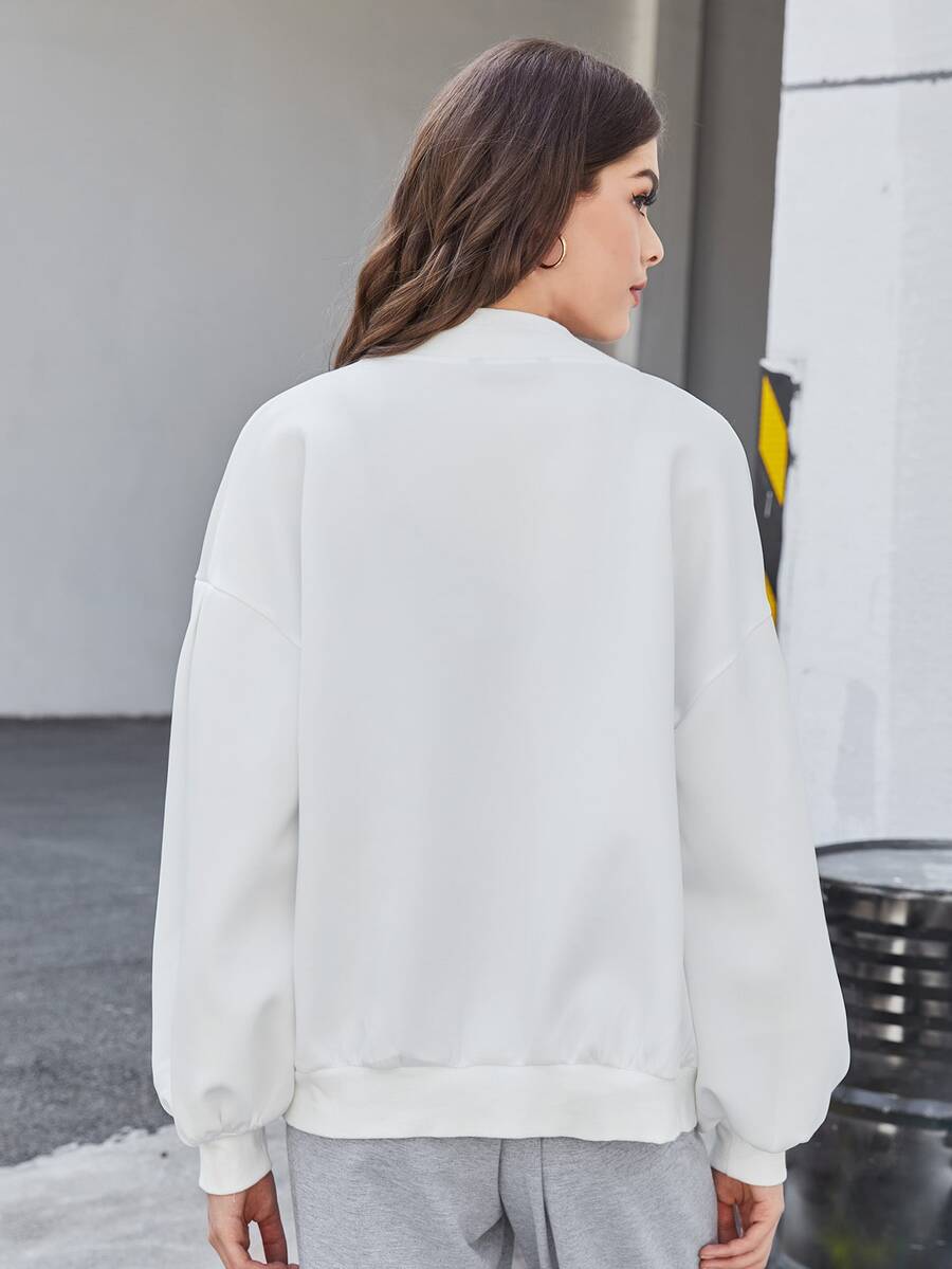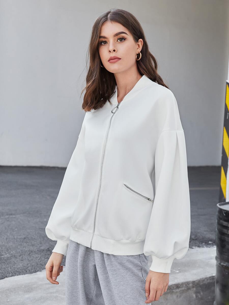 Drop Shoulder Lantern Sleeve Solid Bomber Jacket