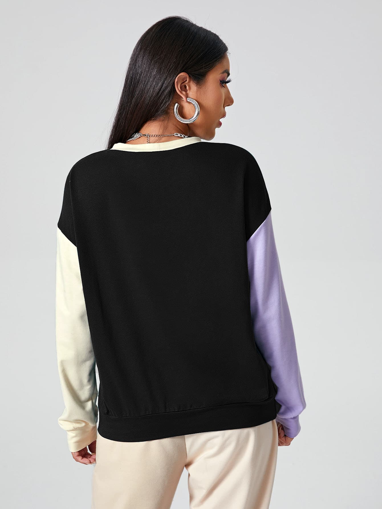 Drop Shoulder Letter Graphic Colorblock Pullover