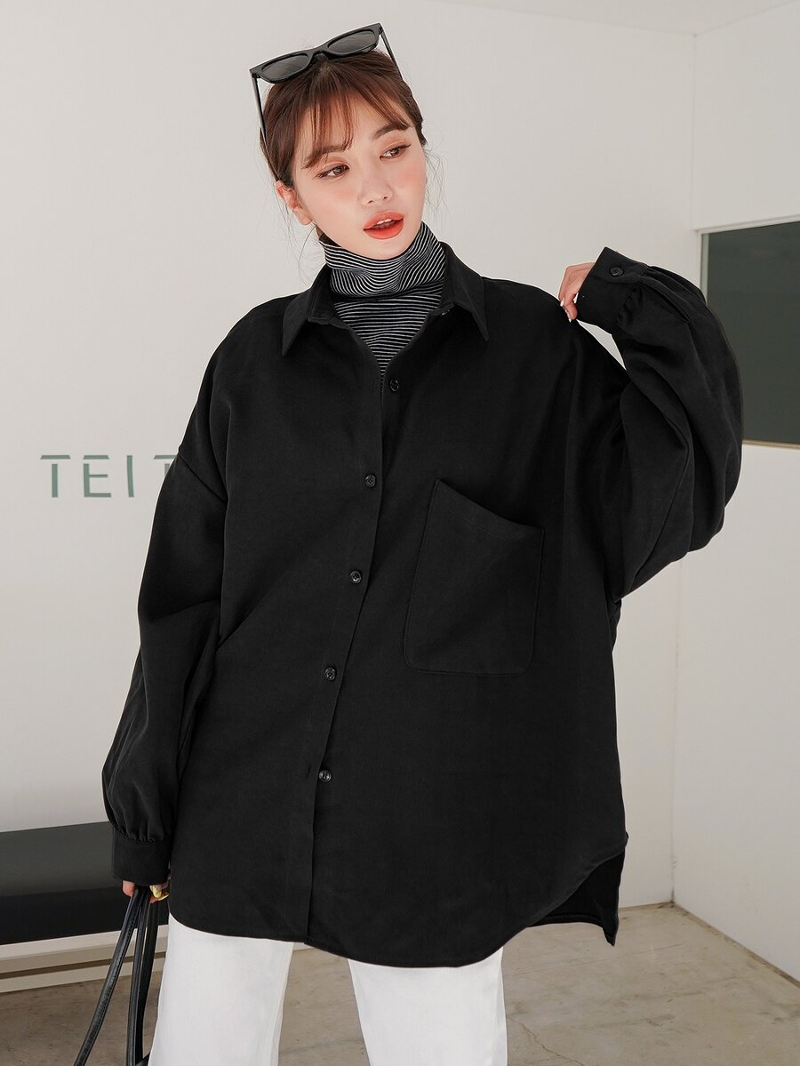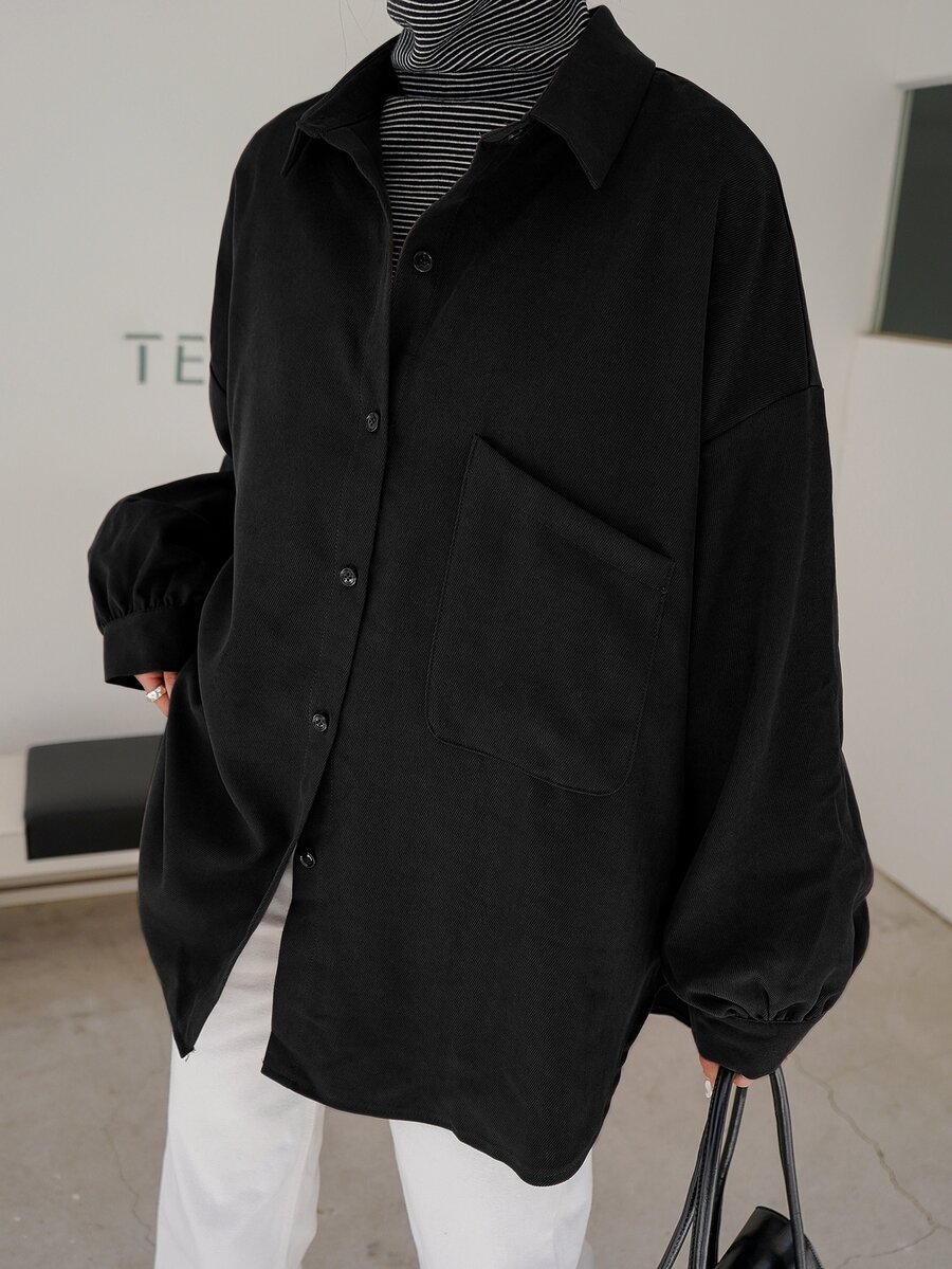 Drop Shoulder Pocket Patched Blouse,Long Sleeve Tops,Fall Clothes