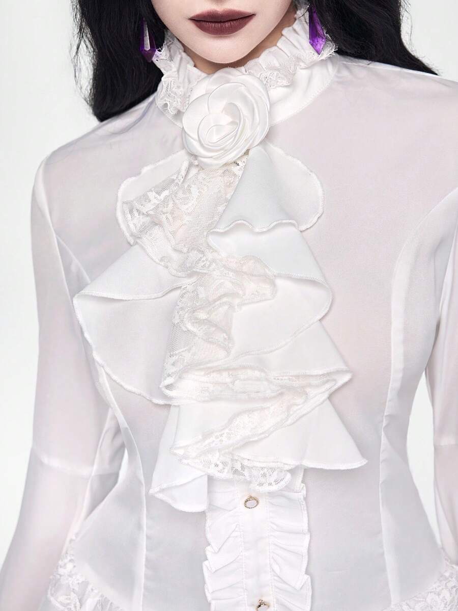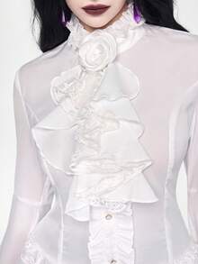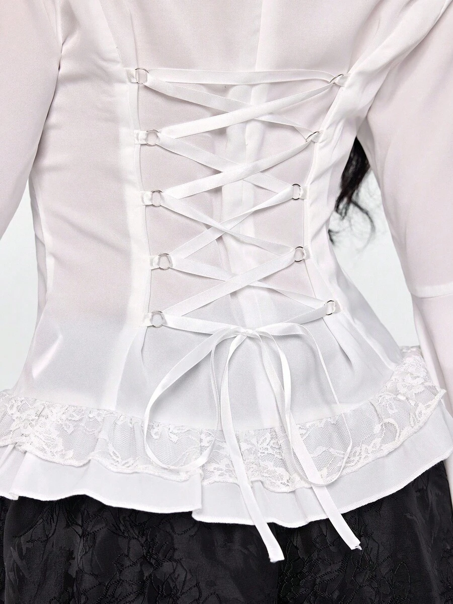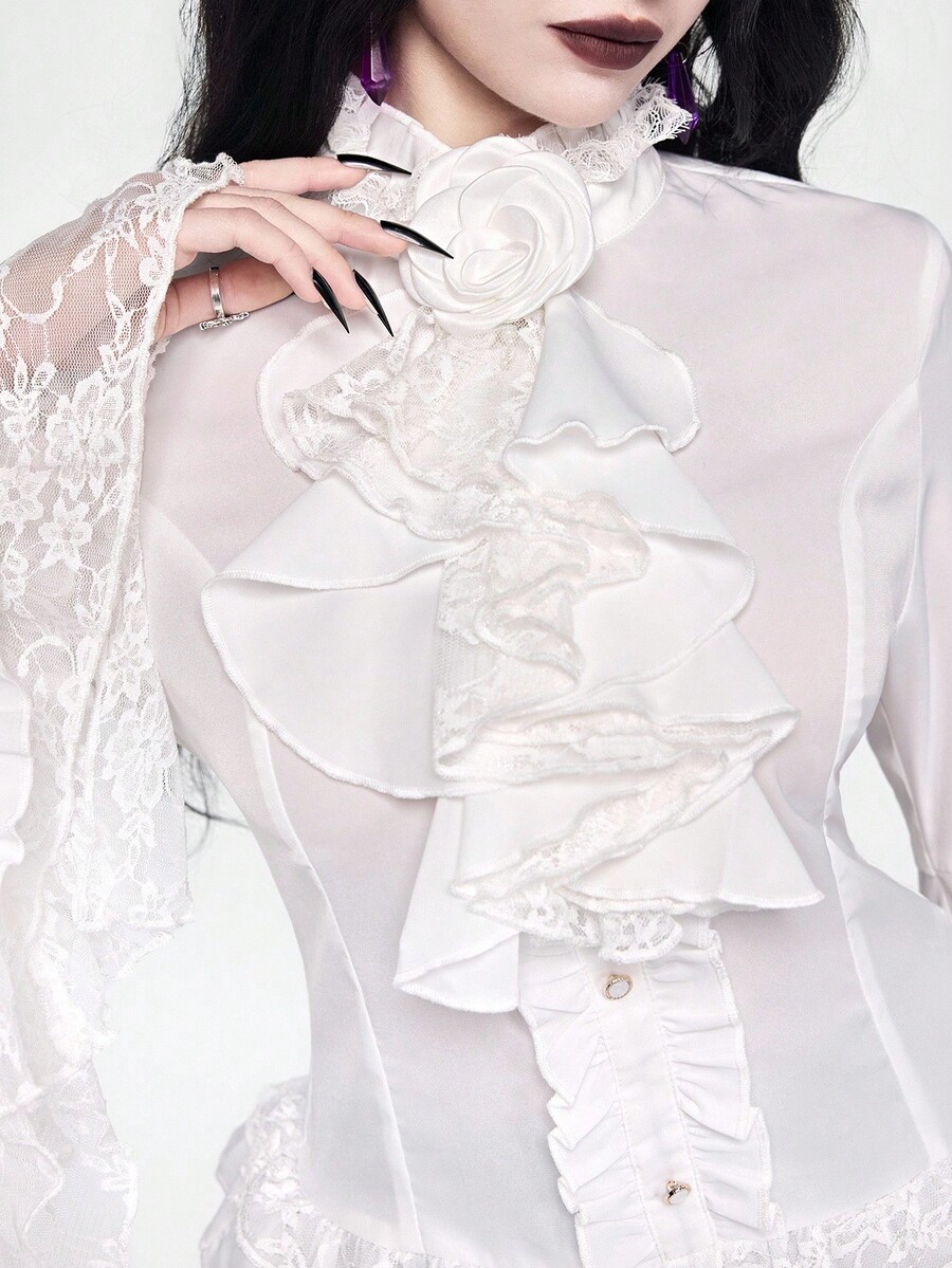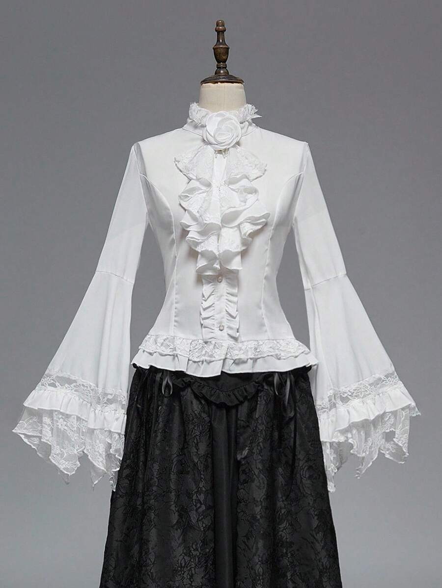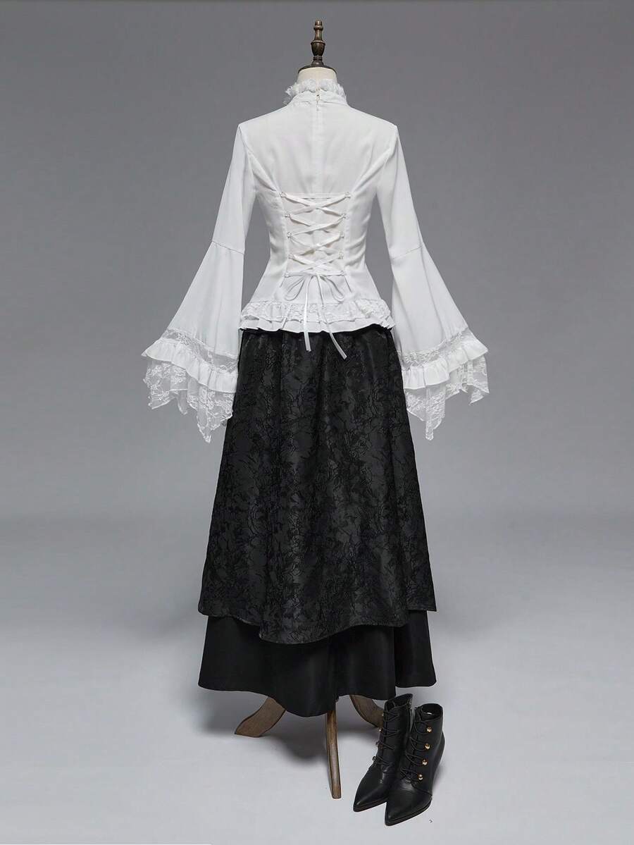 EDITION Gothic Dark Style Lace Bell Sleeve Hem Women Blouse, Suitable For Halloween