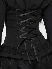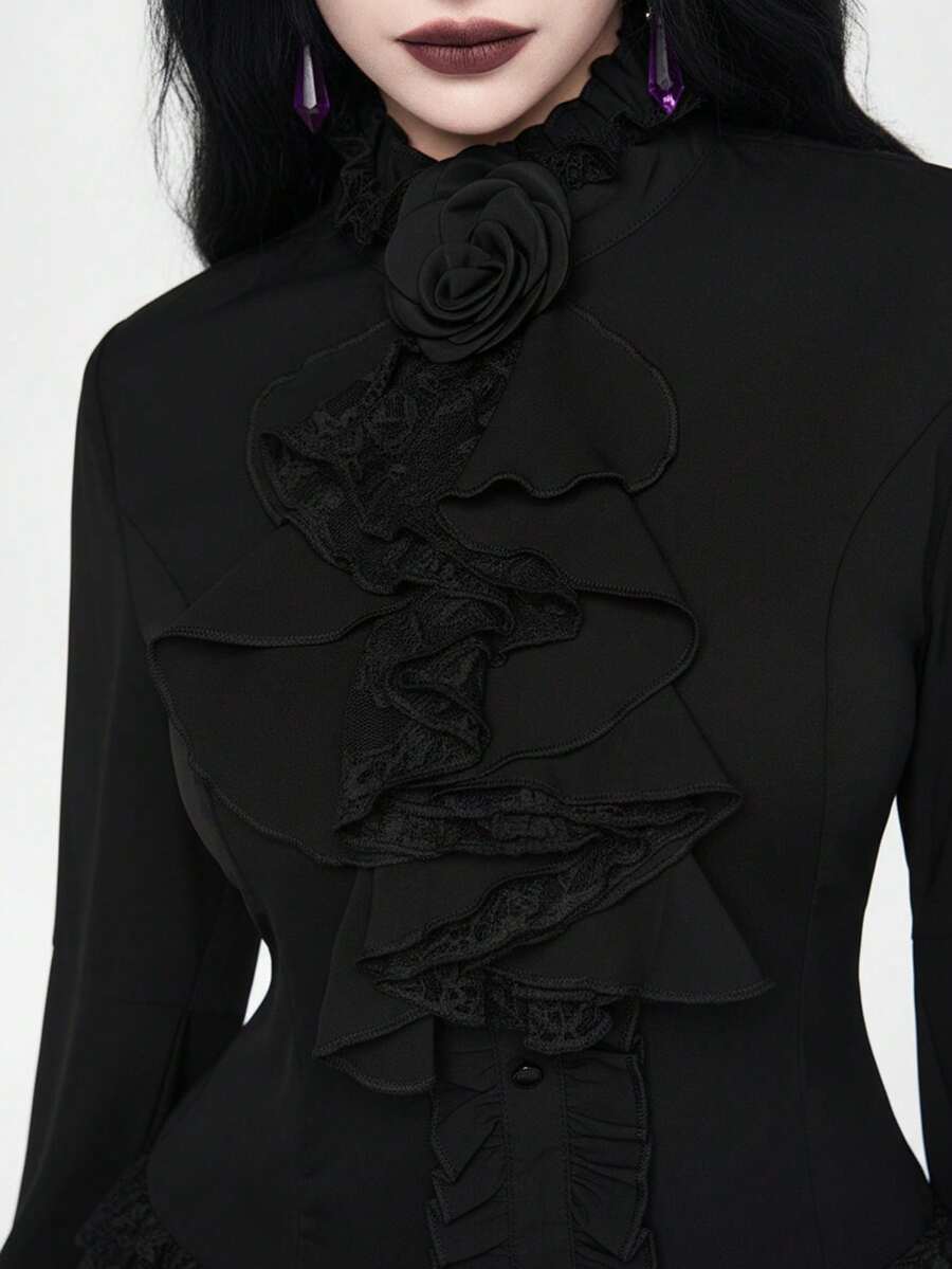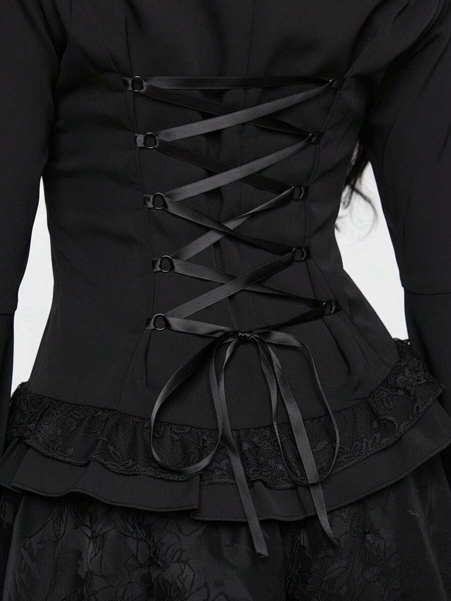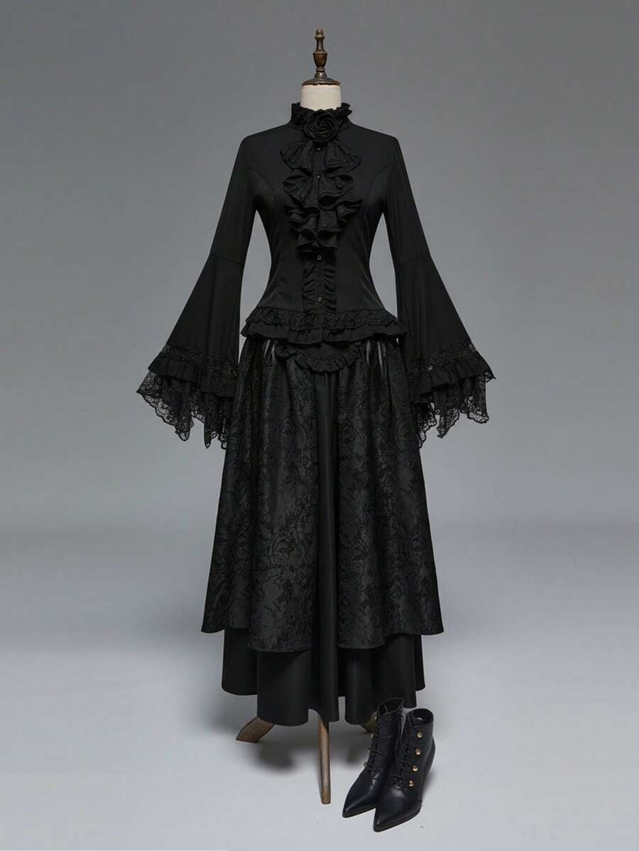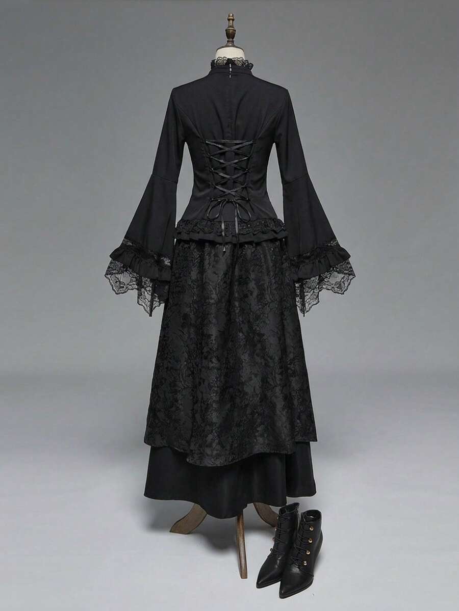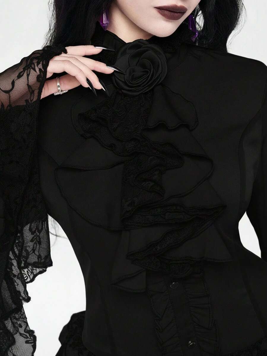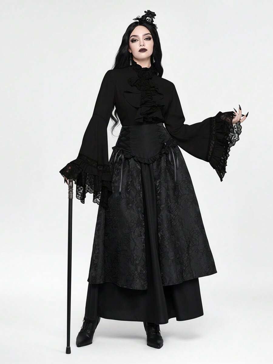 EDITION Gothic Style Lace Flare Sleeve Hem Women's Blouse, Suitable For Halloween Outfit