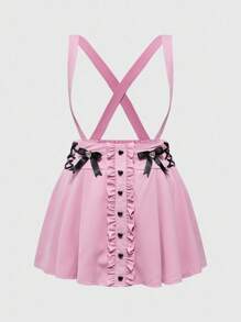 EDITION Plus Size Women's Cute Girly School Style Delicate Heart Diamond Bow Decor Pleated Suspender Skirt