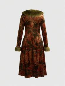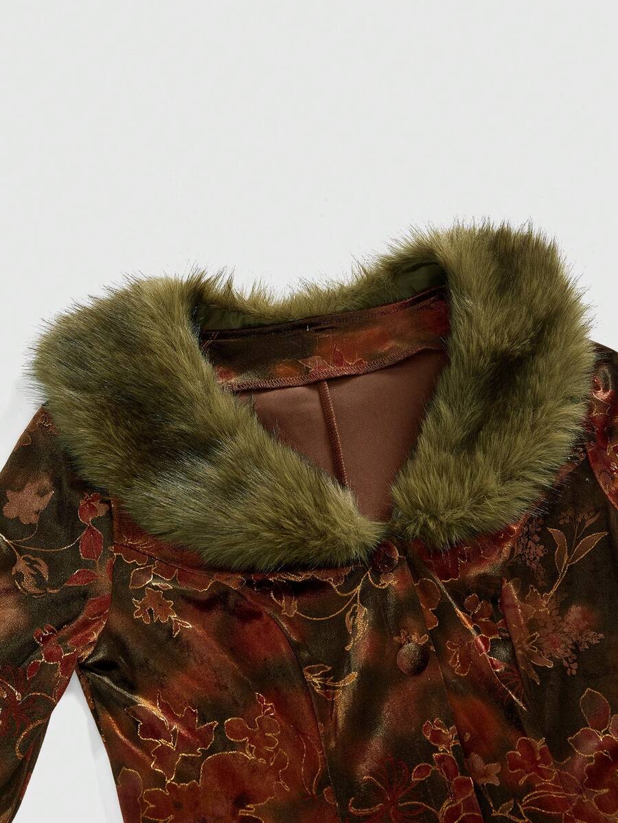 EDITION Vintage Floral Print Plush Patchwork Cardigan Jacket For Women, Halloween