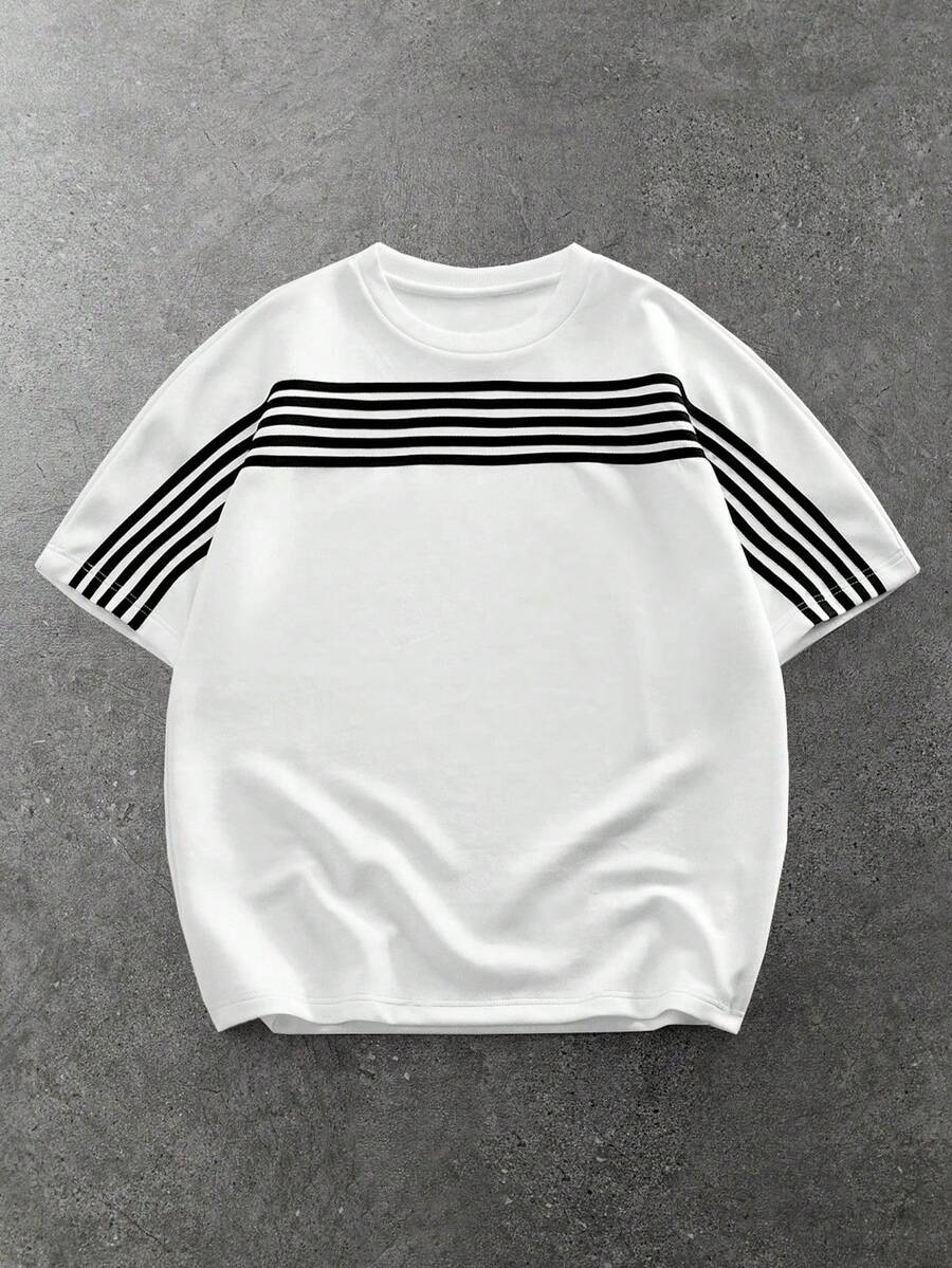 Essentials Men's Casual Striped Print Round Neck Short Sleeve T-Shirt