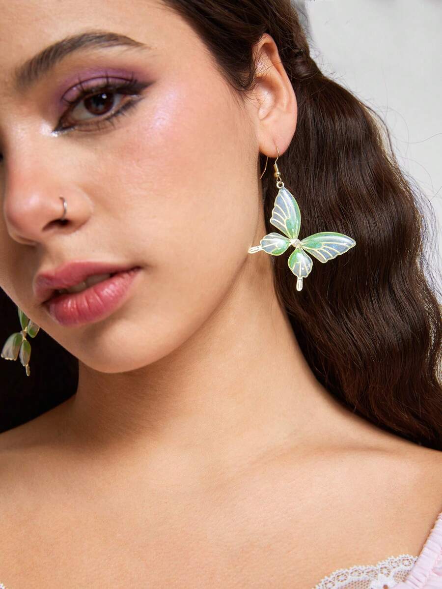 Fairycore 1 Pair Nature-Inspired Pearl Butterfly Dangle Earrings, Elegant And Feminine