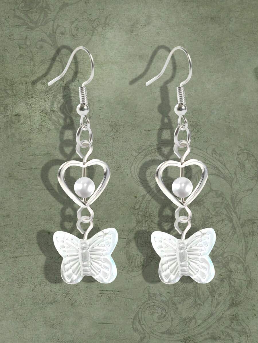 Fairycore 1pair Fashion Copper Alloy Butterfly & Heart Drop Earrings For Women For Daily Decoration