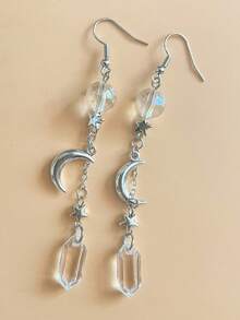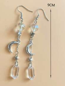 Fairycore 1pair Fashion Zinc Alloy Moon & Star Decor Drop Earrings For Women For Daily Decoration