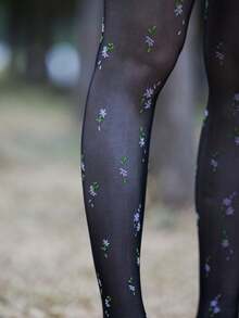 Fairycore 1pair Women Floral Print Tights