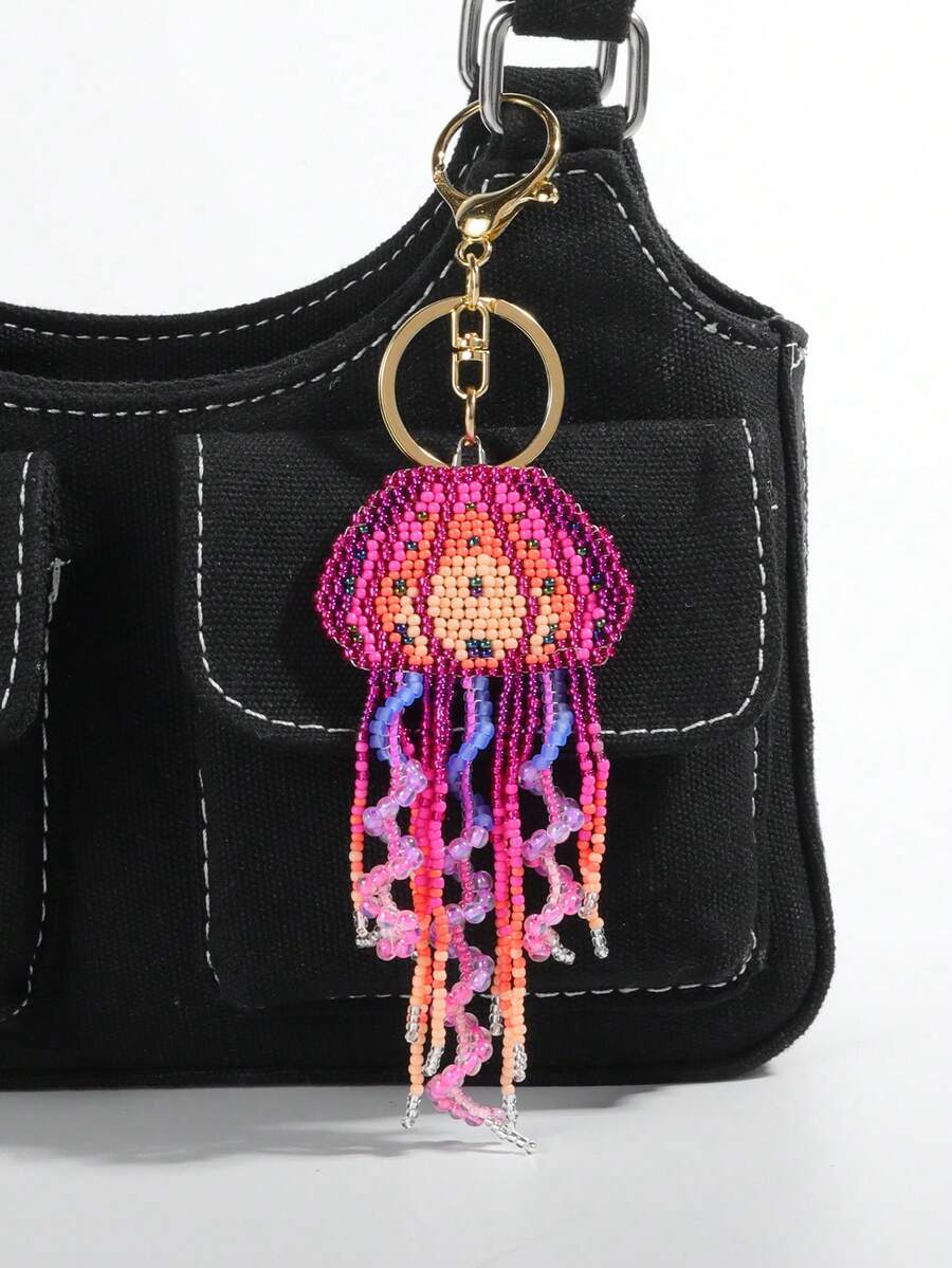Fairycore 1pc Colorful Boho Handmade Beaded Tassel Jellyfish Keychain, Beach Resort Bag Decor Accessory
