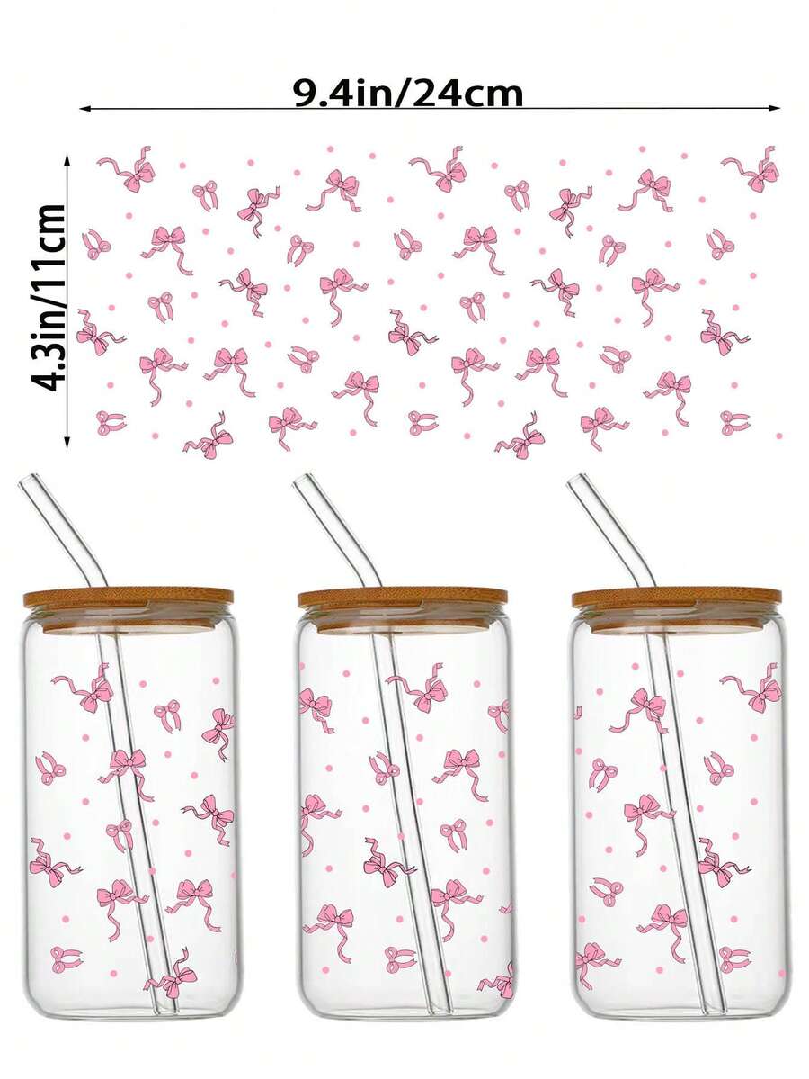 Fairycore 1pc Cute Pink Bow UV Printed Crystal Sticker For Drinking Glass With Pink Bow Design