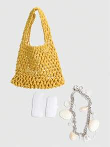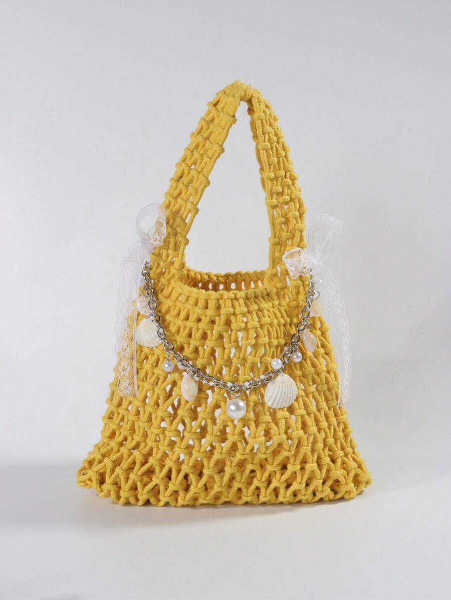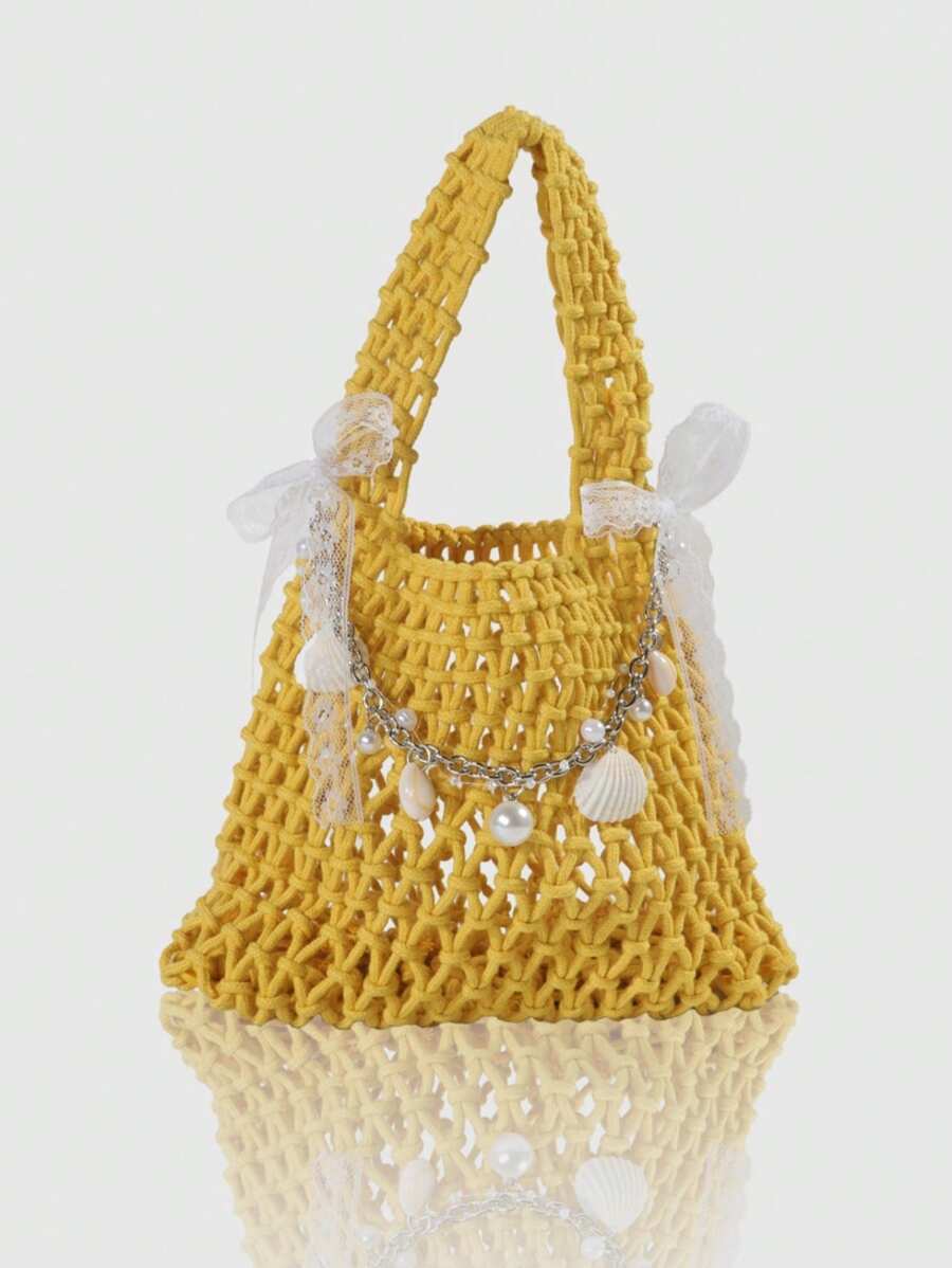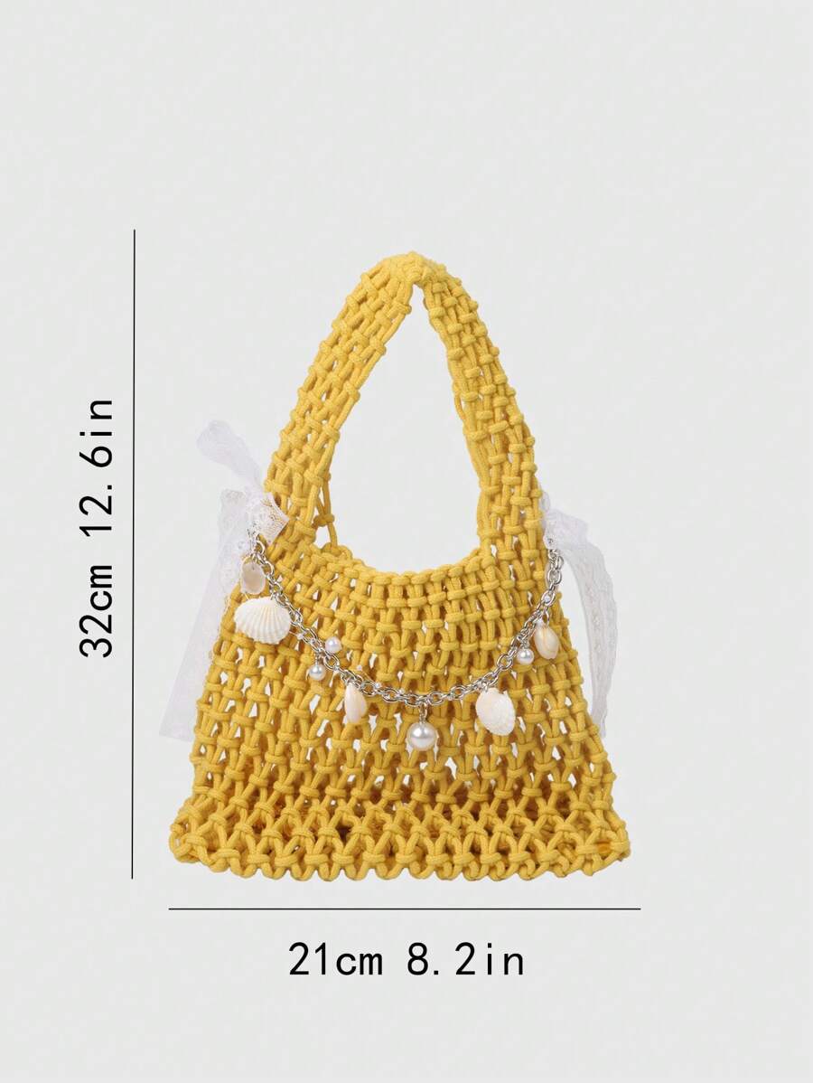Fairycore 1pc Fashionable Personalized Spring/Summer Beach Vacation Style Orange Ocean Woven Beach Bag, Large Size Women Handbag