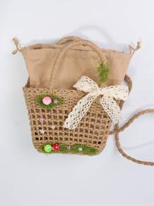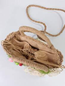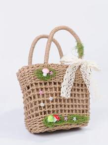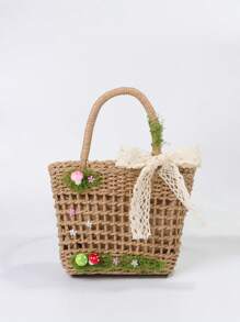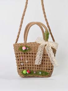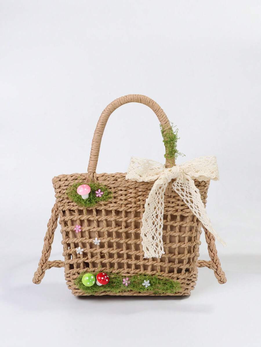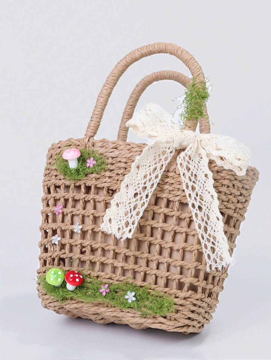 Fairycore 1pc Fashionable Personalized Spring/Summer Beach Vacation Style Orange Ocean Woven Beach Bag, Large Size Women Handbag