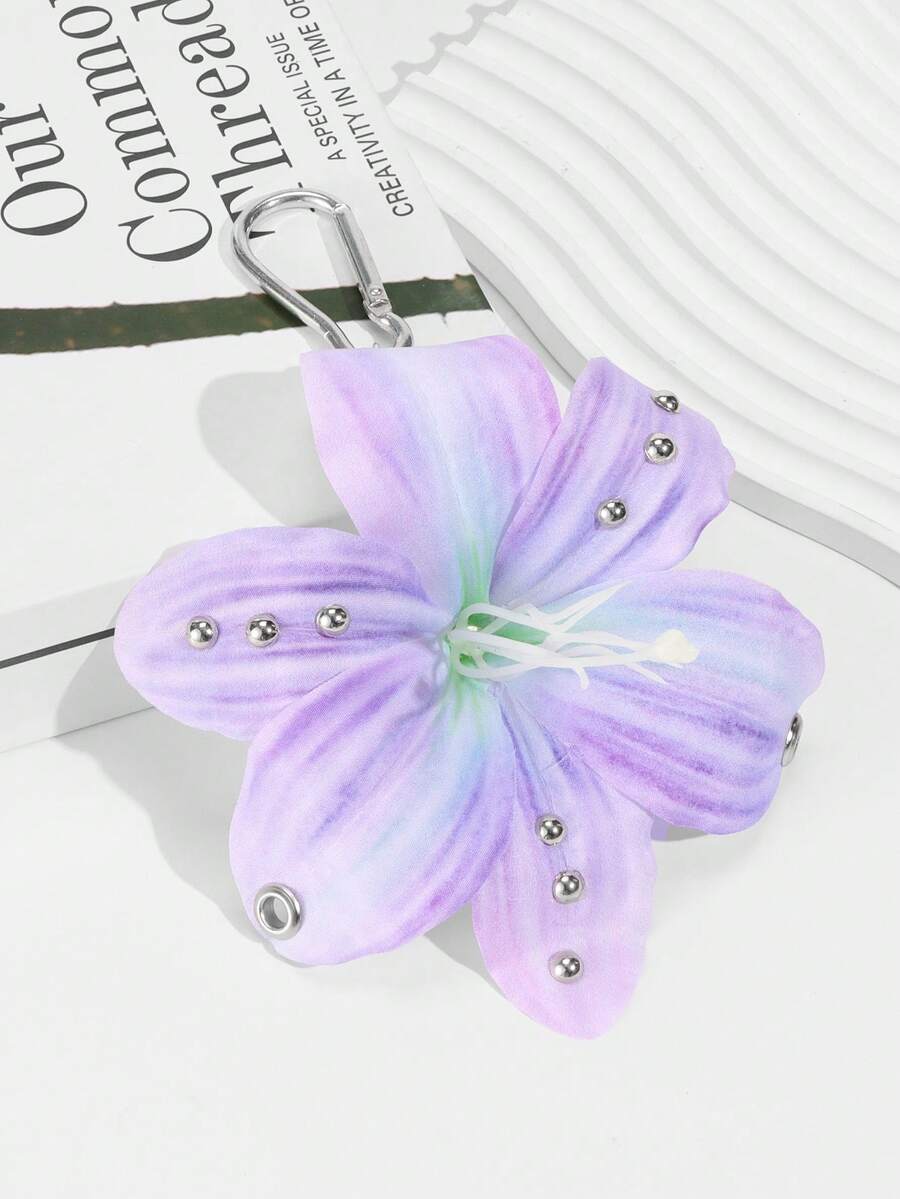 Fairycore 1pc Lilac Gradient Lily Flower Decor Keychain, Chic Beach Resort Style, Wedding Birthday Holiday Gift Bag Charm