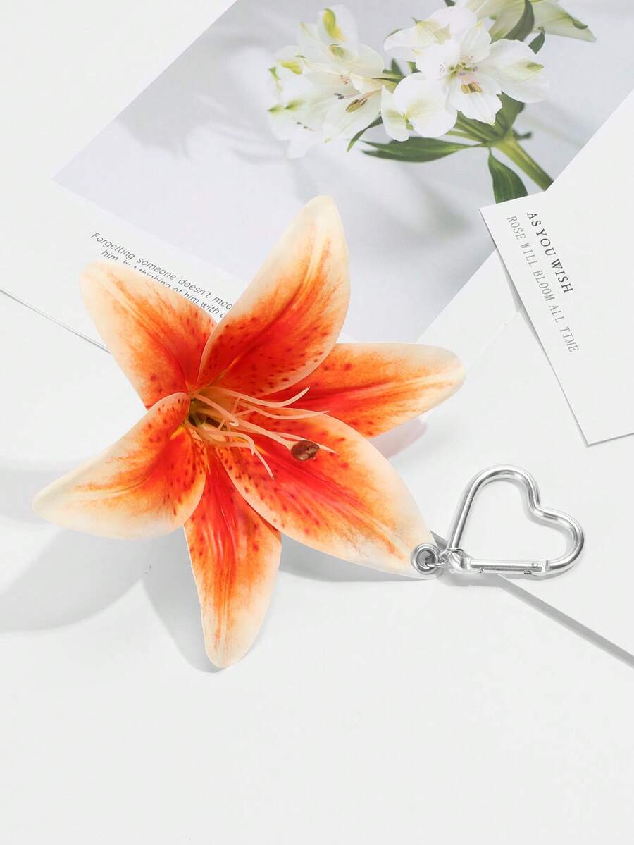Fairycore 1pc Sweet Gradient Orange Lily Decor Heart-Shaped Key Chain, Beach Vacation Style Wedding Party Gift Accessories, Suitable For Back-To-School Teens