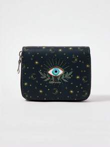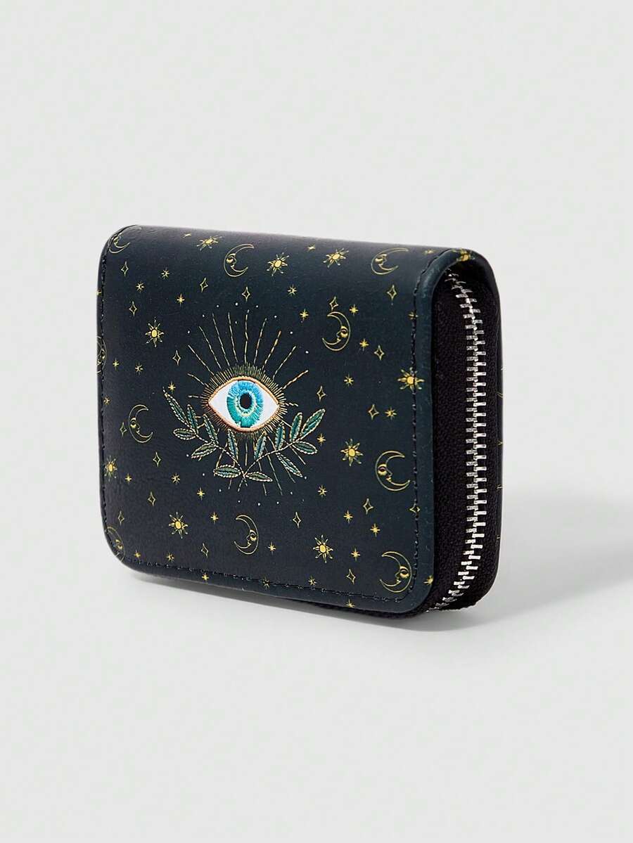 Fairycore 1pc Women Minimalist Eye-Sun-Moon-Star Vine Pattern Zipper Short Wallet, Coin Purse