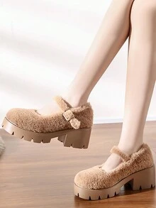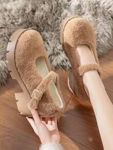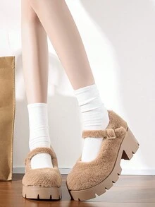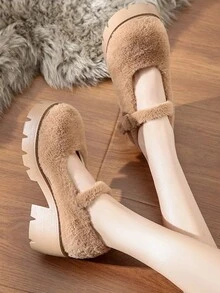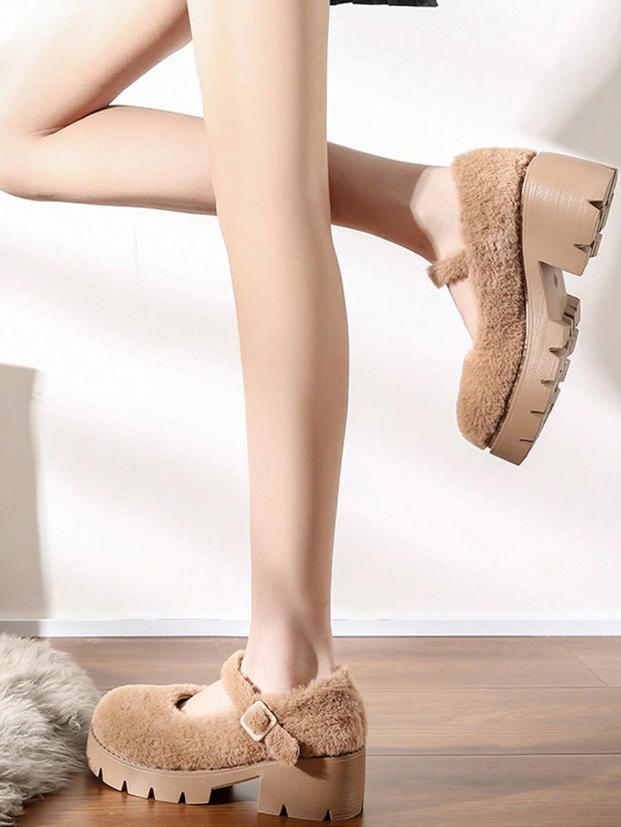 Fairycore 2024 Fuzzy British Style Thick-Soled Shoes