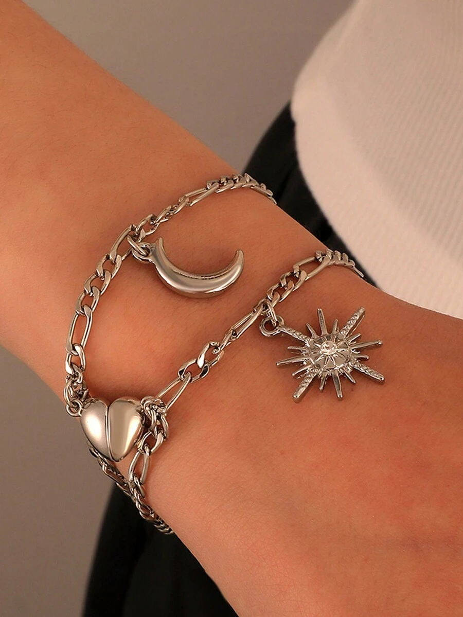 Fairycore 2pcs Valentine's Day Link Chain Bracelets