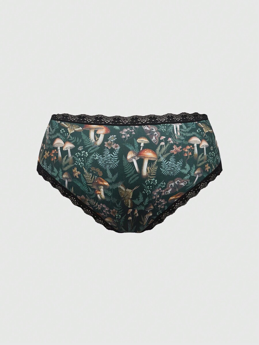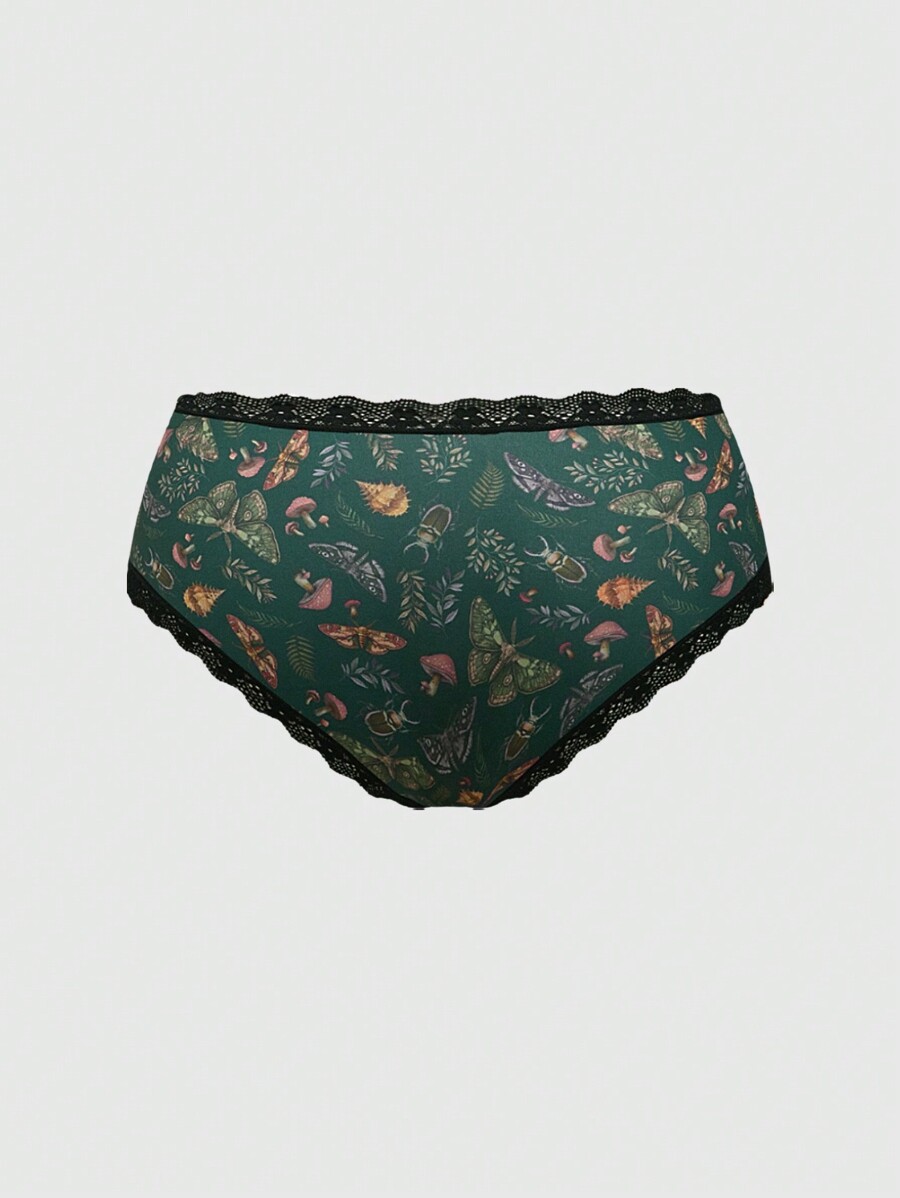 Fairycore 3pcs/Pack Women Plus Size Fairy Butterfly & Plant All-Over Print Lace Panel Cotton Briefs
