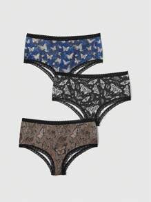 Fairycore 3pcs Plus Size Lace Butterfly & Skull Patchwork Wide Side Thong Set