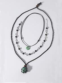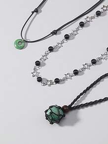 Fairycore 3pcs Vintage Punk Star Beads Necklace Handmade Natural Stone Multilayer Necklace For Women