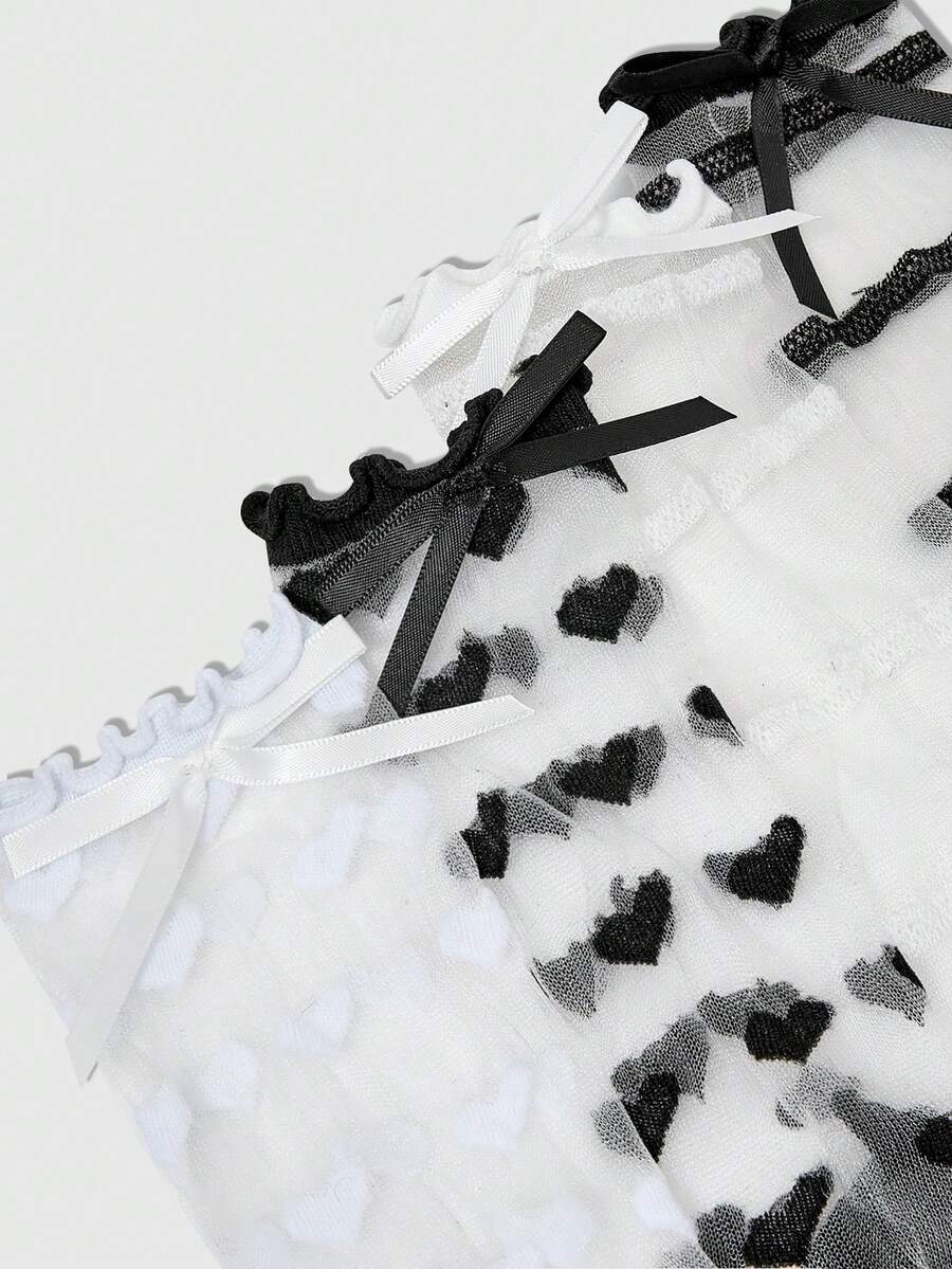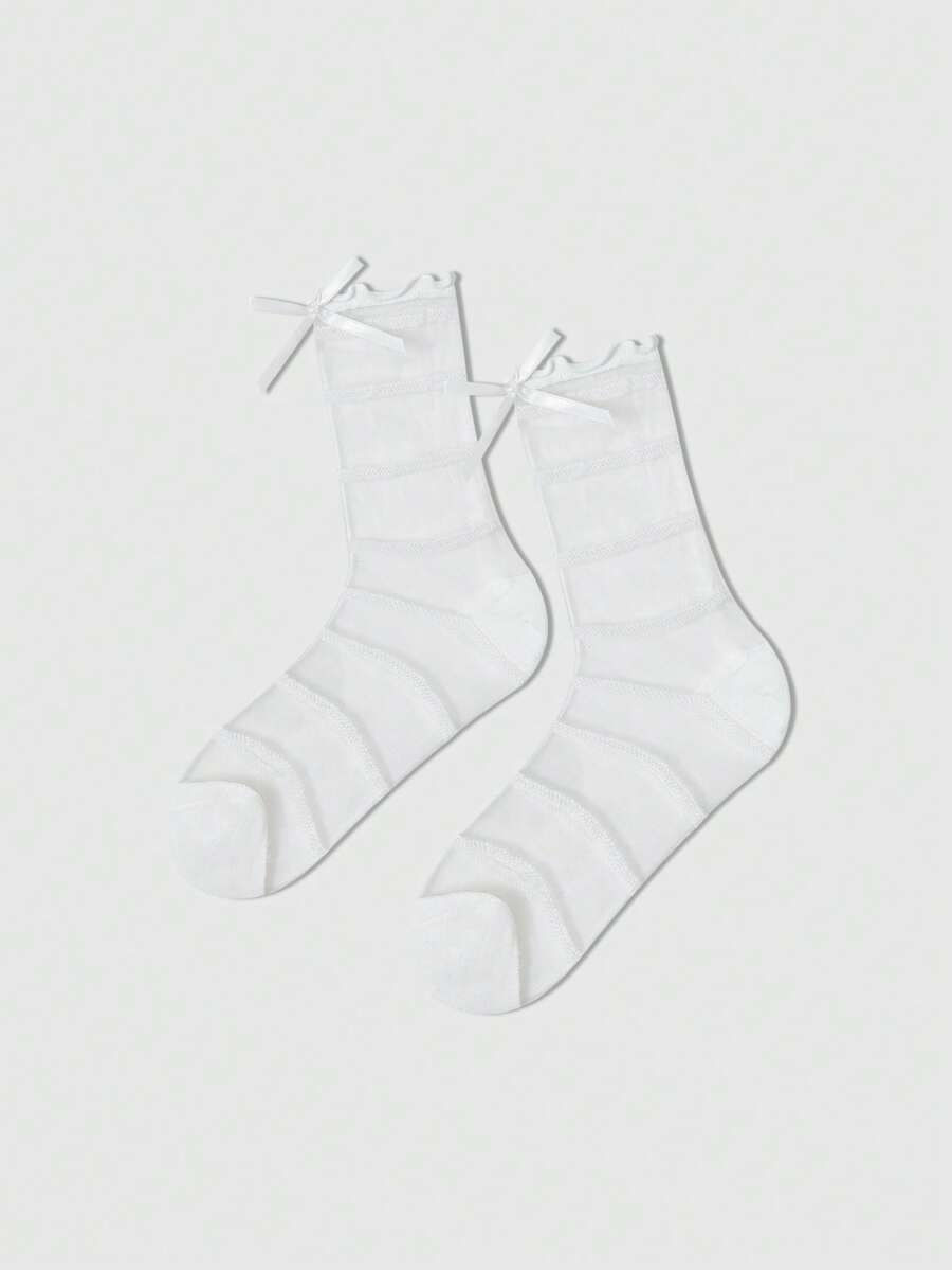 Fairycore 4 Pairs Women's Black Butterfly Lace Trim Silk Mid-Calf Socks, All Season