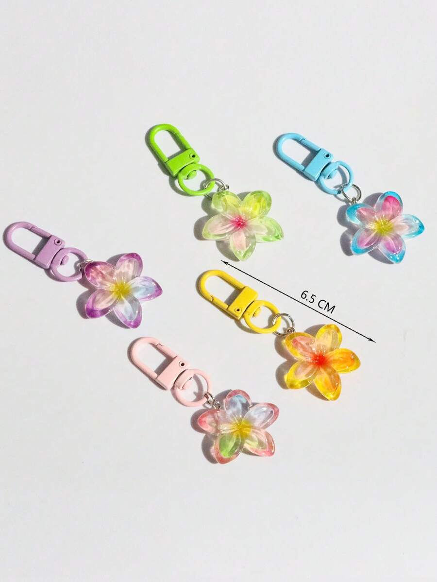 Fairycore 5pcs Gradient Color Resin Jasmine Flower Key Chain, Fashion Floral Pendant Key Ring For Car/Backpack Decor