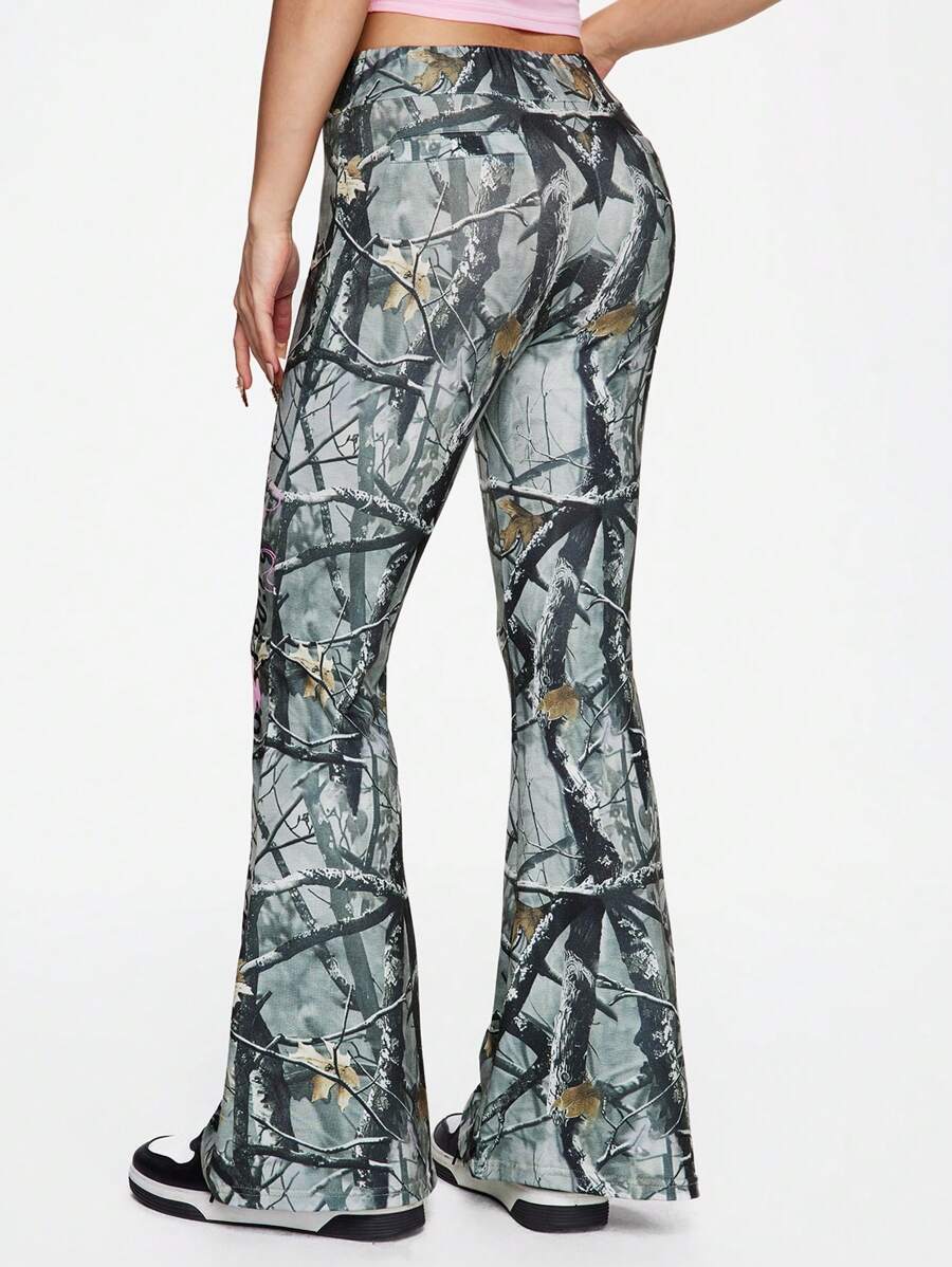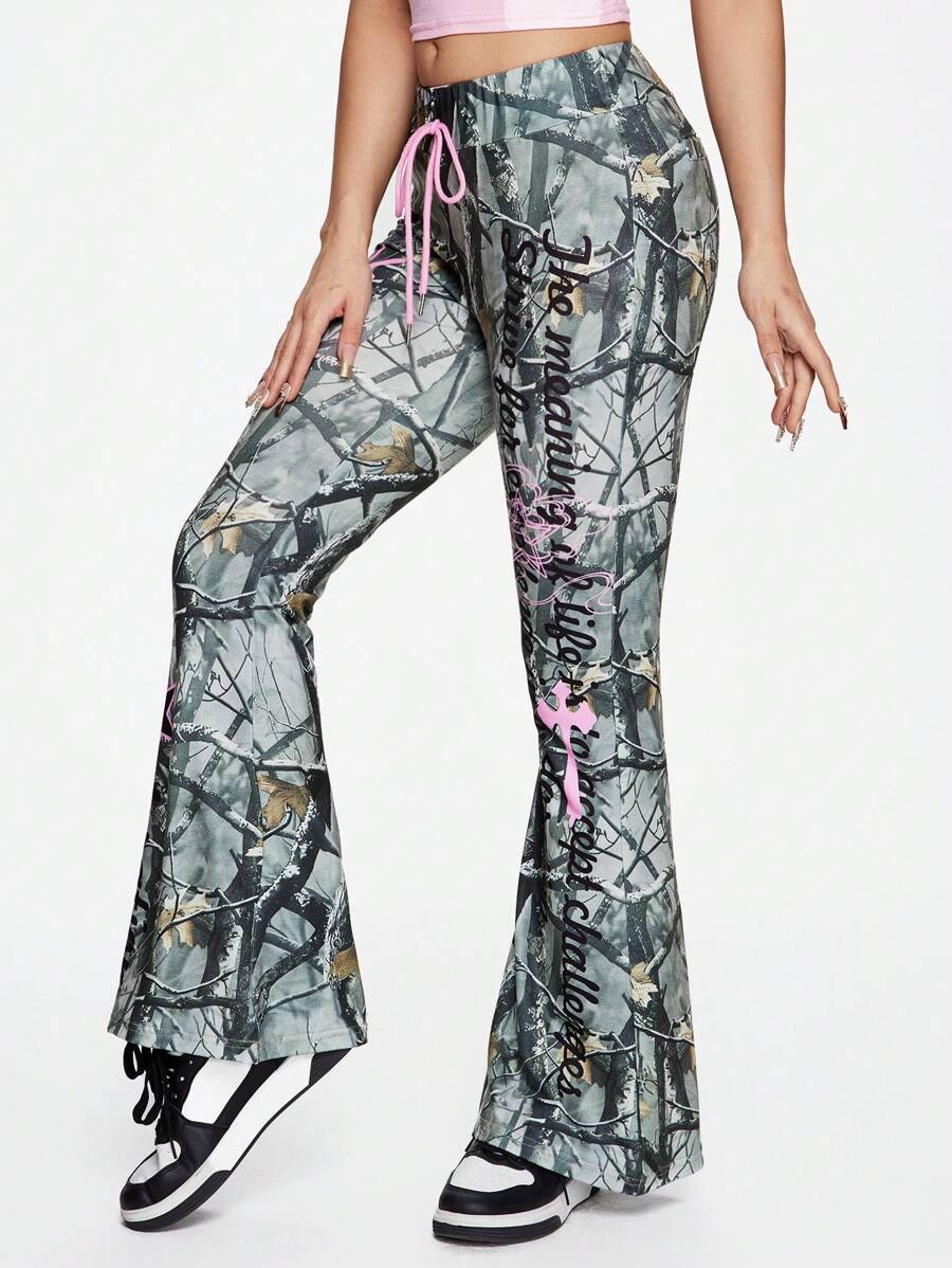 Fairycore Camouflage Graffiti Print Flare Leg Knit Pants