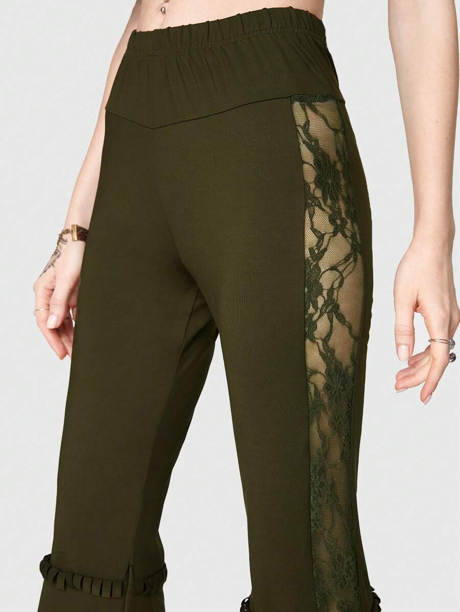 Fairycore Contrast Lace Cut Out Flare Leg Pants