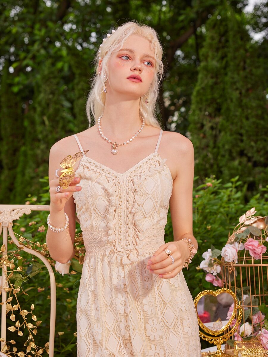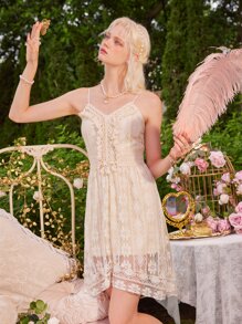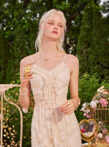 Fairycore Contrast Lace Tassel Decor Cami Dress