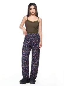 Fairycore Fairy Knit Ribbed Lace Patchwork Moth Mushroom Plant Insect All-Over Print Casual Pajama Set