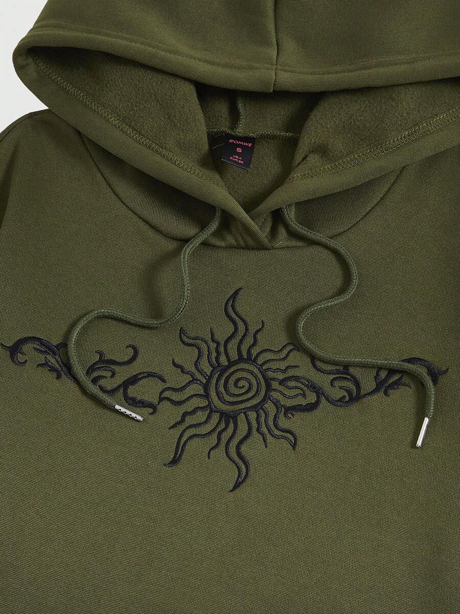 Fairycore Graphic Print Kangaroo Pocket Drawstring Hoodie