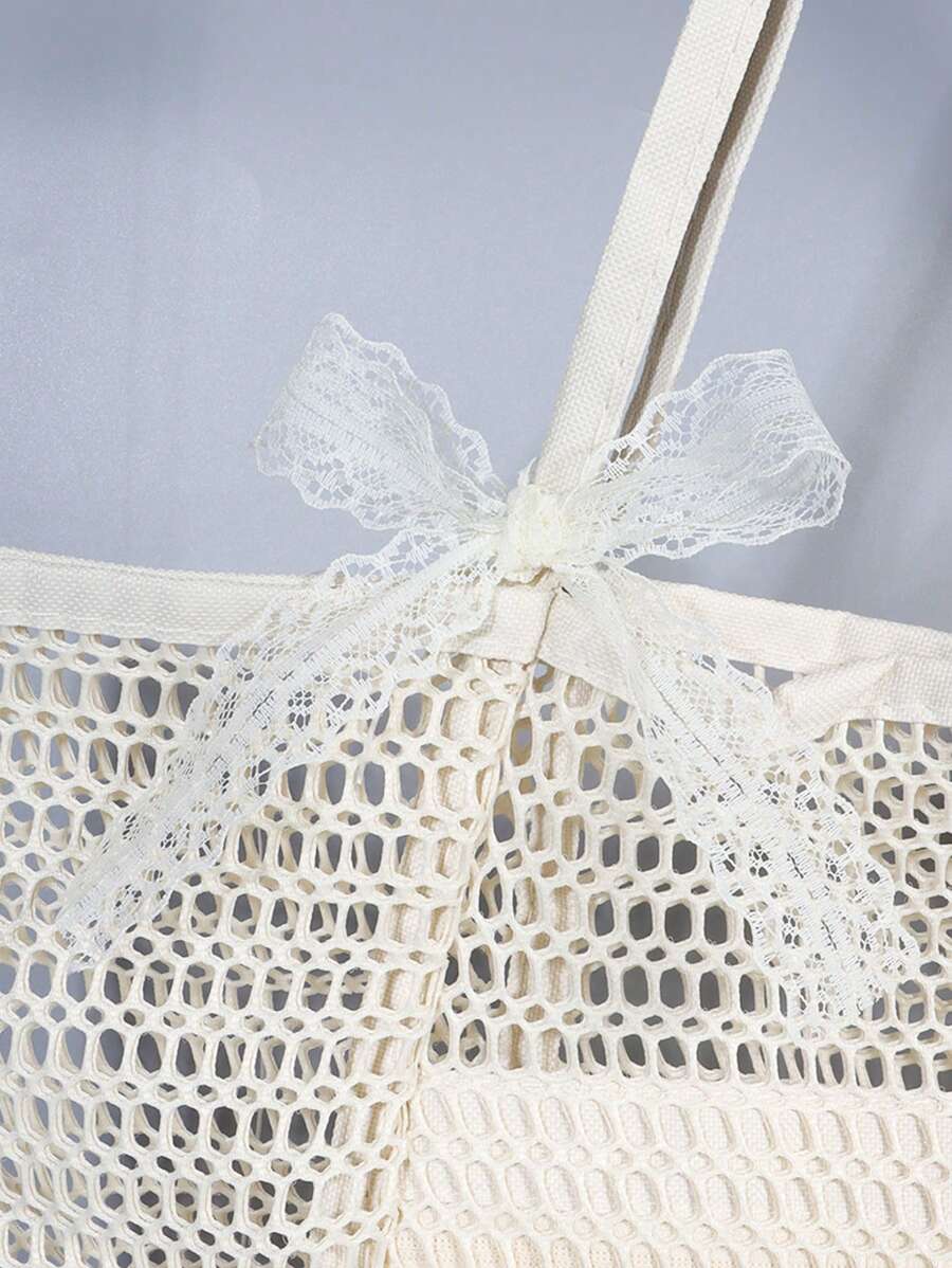 Fairycore Mesh Beach Bag Large Beach Tote Bag, Multi-Use Organizer With Zipper Closure, Foldable Handy Large Mesh Tote Bag Lightweight For Family Beach Bag For Toys & Vacation Essentials, Tote Bags For Students, Multiple Compartments, Perfect For Beach, School, Work & Daily Use