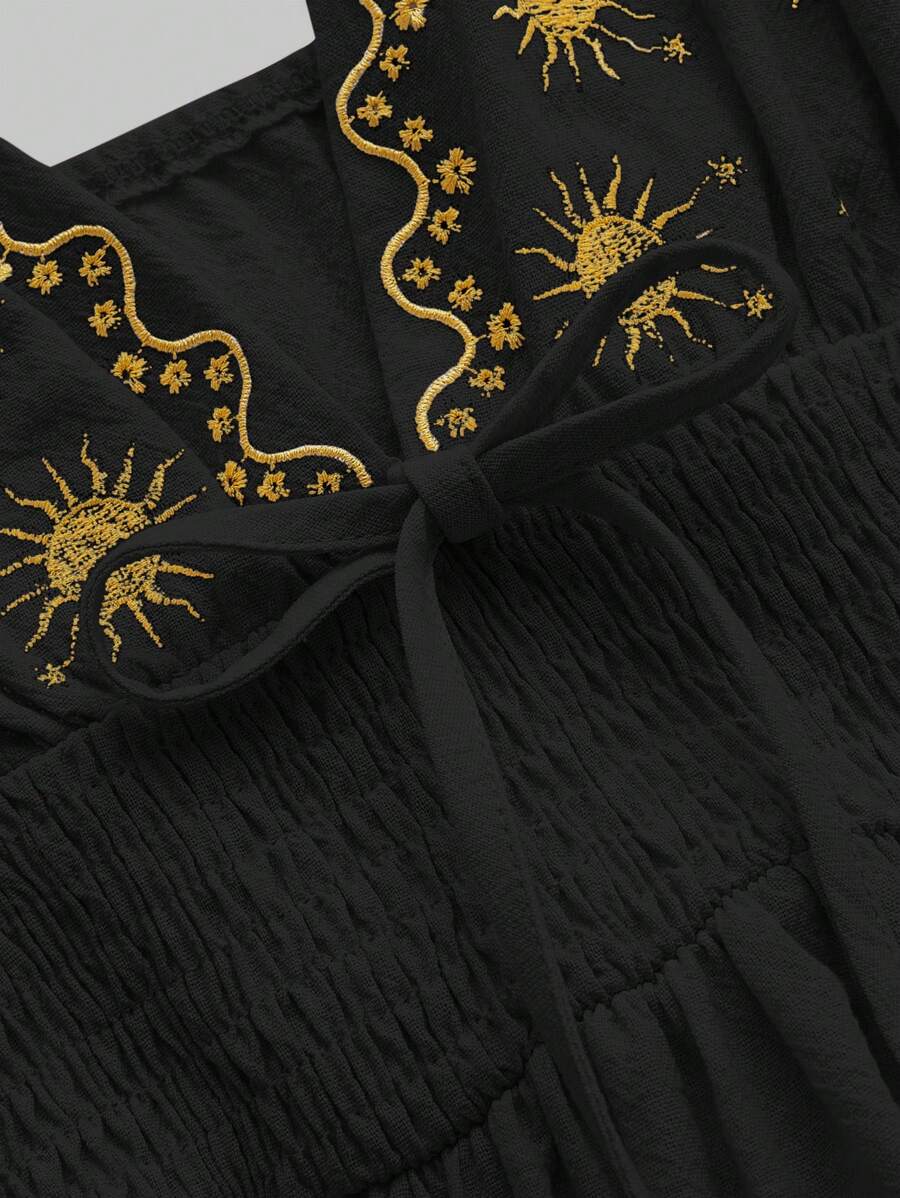Fairycore Mysterious Star & Moon Embroidery Retro Beach Vacation Style Slim Fit A-Line Plus Size Cami Dress, For Summer