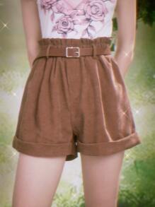 Fairycore Paperbag Waist Corduroy Shorts Without Belt