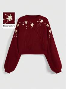 Fairycore Pastoral Embroidered Short Pullover Sweater, Simple Fashion Casual Everyday Wear For Women