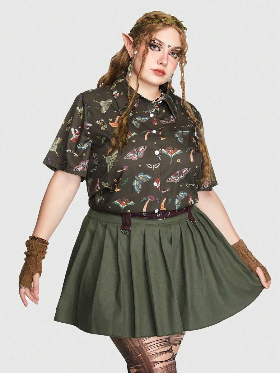 Fairycore Plus Camo Print Drop Shoulder Shirt