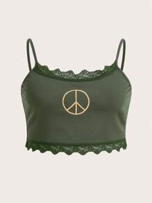 Fairycore Plus Embroidery Detail Contrast Lace Cami Top