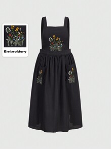 Fairycore Plus Floral Embroidery Overall Dress, School