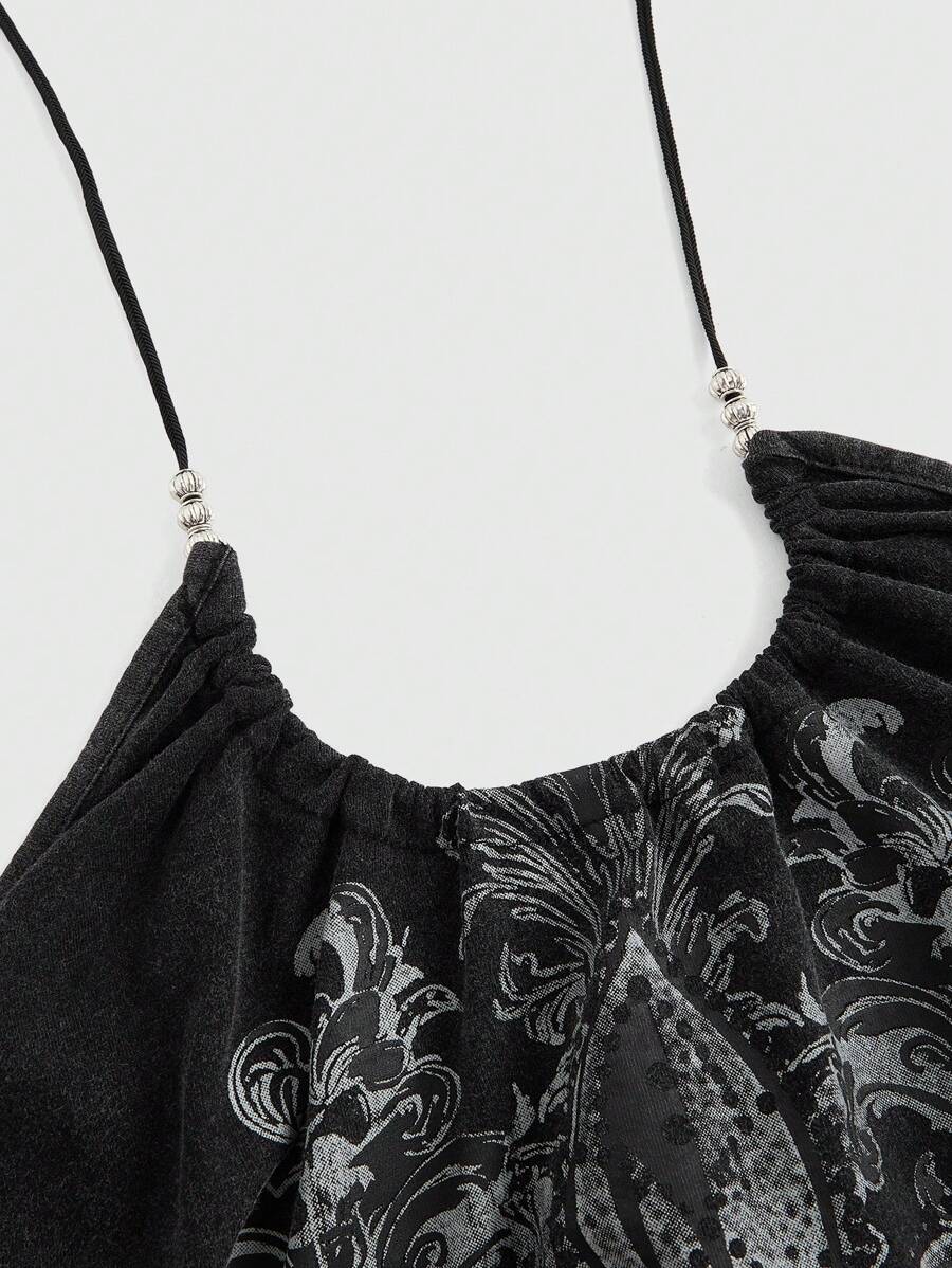 Fairycore Plus Size Rhinestone Embellished Lily Flower & Thorn Tattoo Print Cami Top