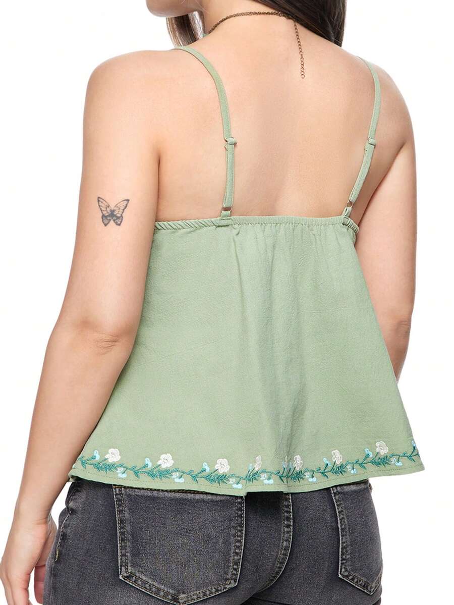Fairycore Plus Size Women Floral Embroidery Ruffle Hem Camisole