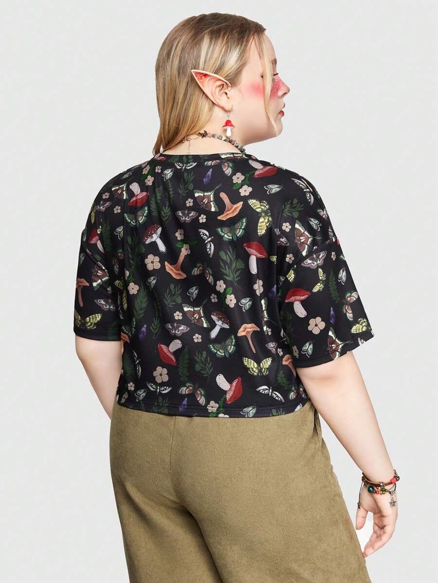 Fairycore Plus Size Women's Mushroom & Butterfly Printed T-shirt