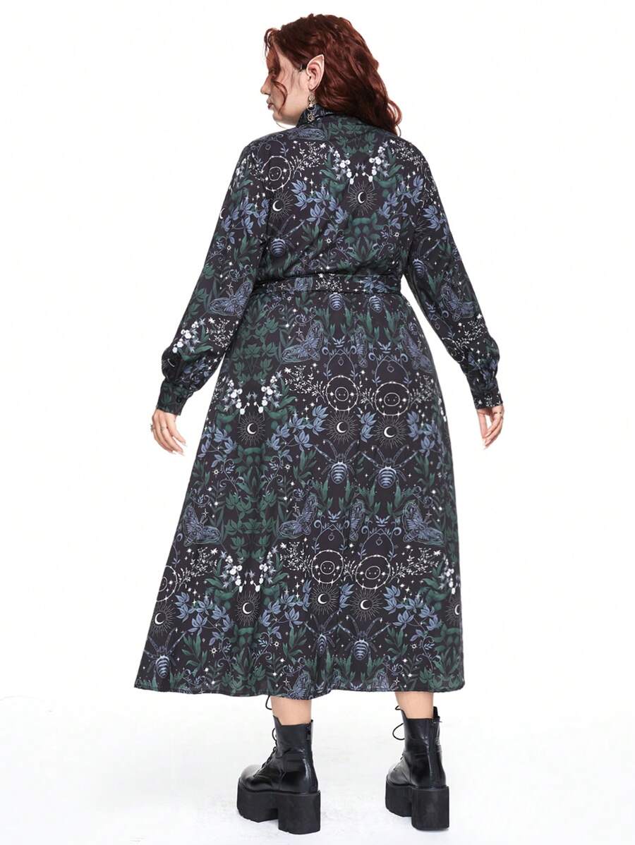 Fairycore Retro Romantic Dark Floral Moth Print Purple Mysterious Witch Style Wrap A-Line Plus Size Dress