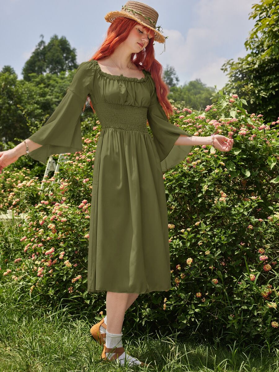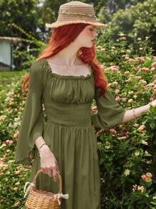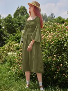 Fairycore Square Neck Ruched Bust Flounce Sleeve Dress