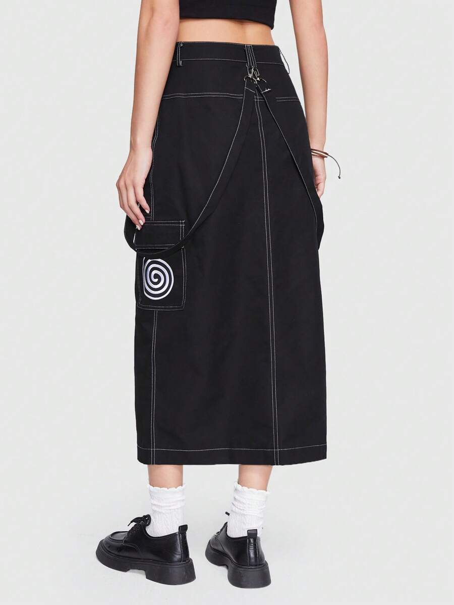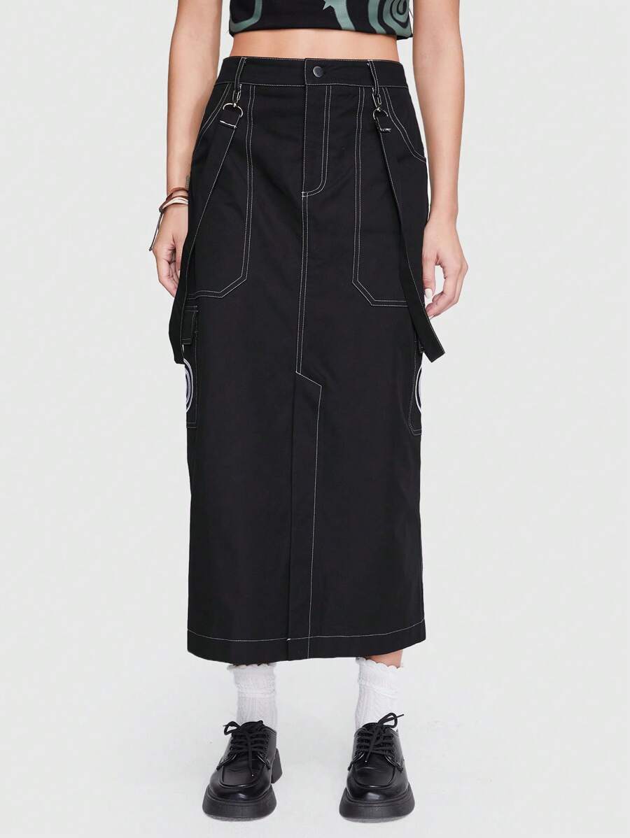 Fairycore Top-stitching Flap Pocket Side Cargo Skirt