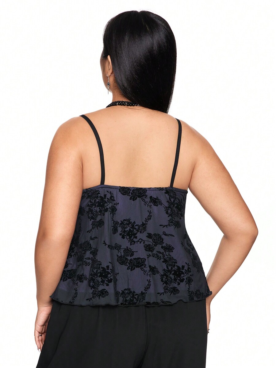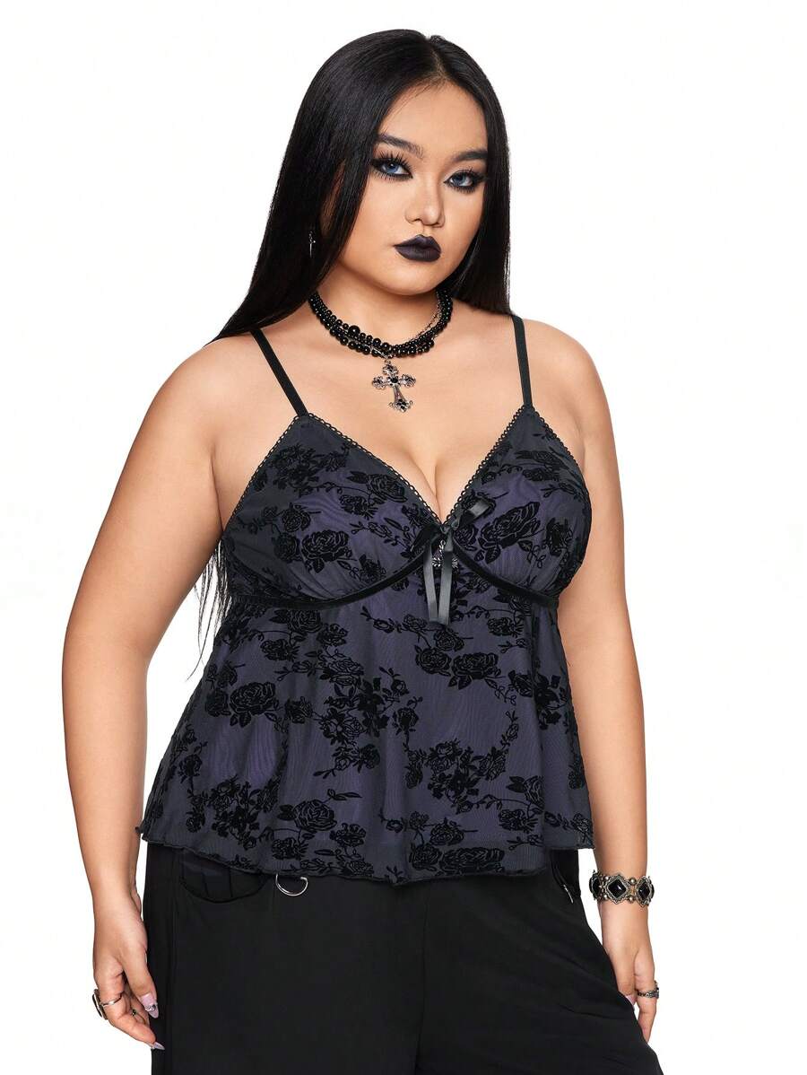 Fairycore Vintage Cross & Floral Flocked Plus Size Women Cami Tank Top