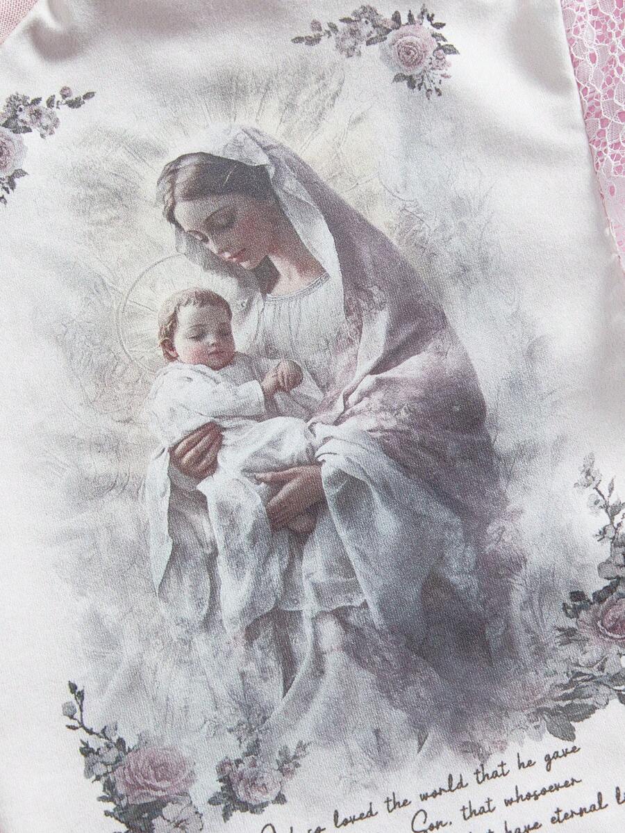 Fairycore Vintage Style Lady Virgin Mary Print Contrast Lace Waist Corset Top