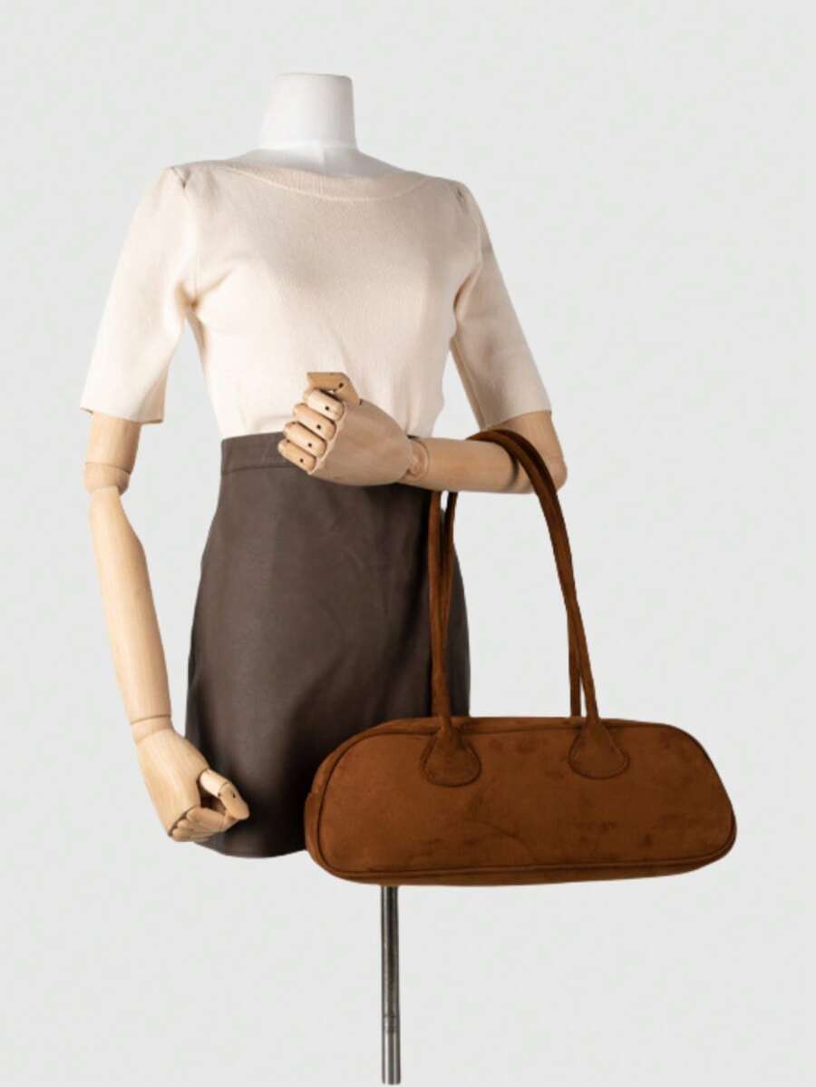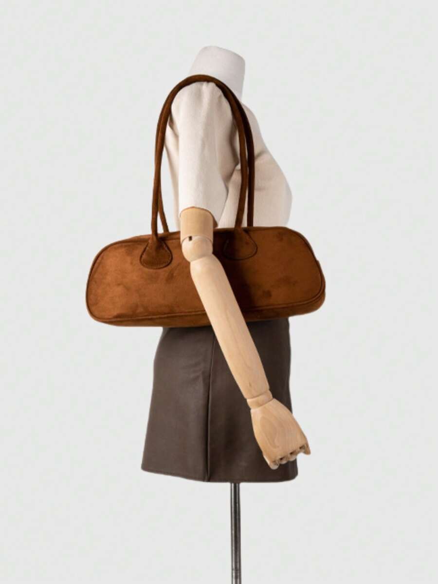 Fairycore Women Minimalist Vintage Suede Shoulder Baguette Bag, Casual Elegant High-End Commuter Underarm Handbag, Autumn/Winter