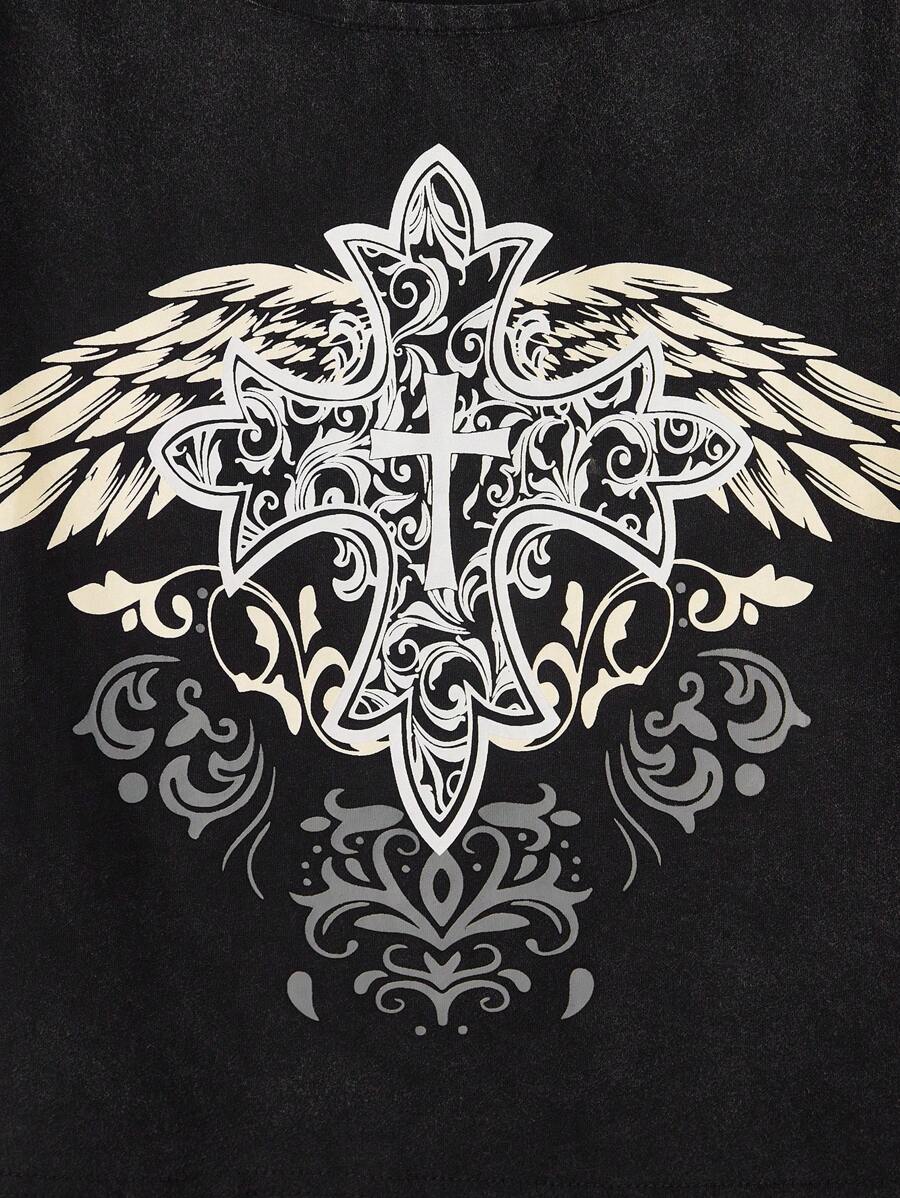 Fairycore Women Summer Loose Short Sleeve Graphic Print Boat Neck T-Shirt