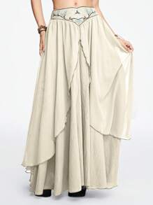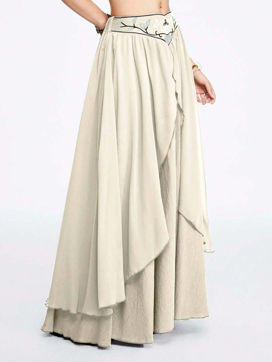 Fairycore Women's Botanical Print Contrast Mesh Long Skirt