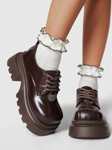 Fairycore Women's Classic Brown High Heel Closed Toe Lace-Up Mary Jane Pumps, Flatform Shoes, Office/Work Oxfords, Round Toe Platform Loafers
